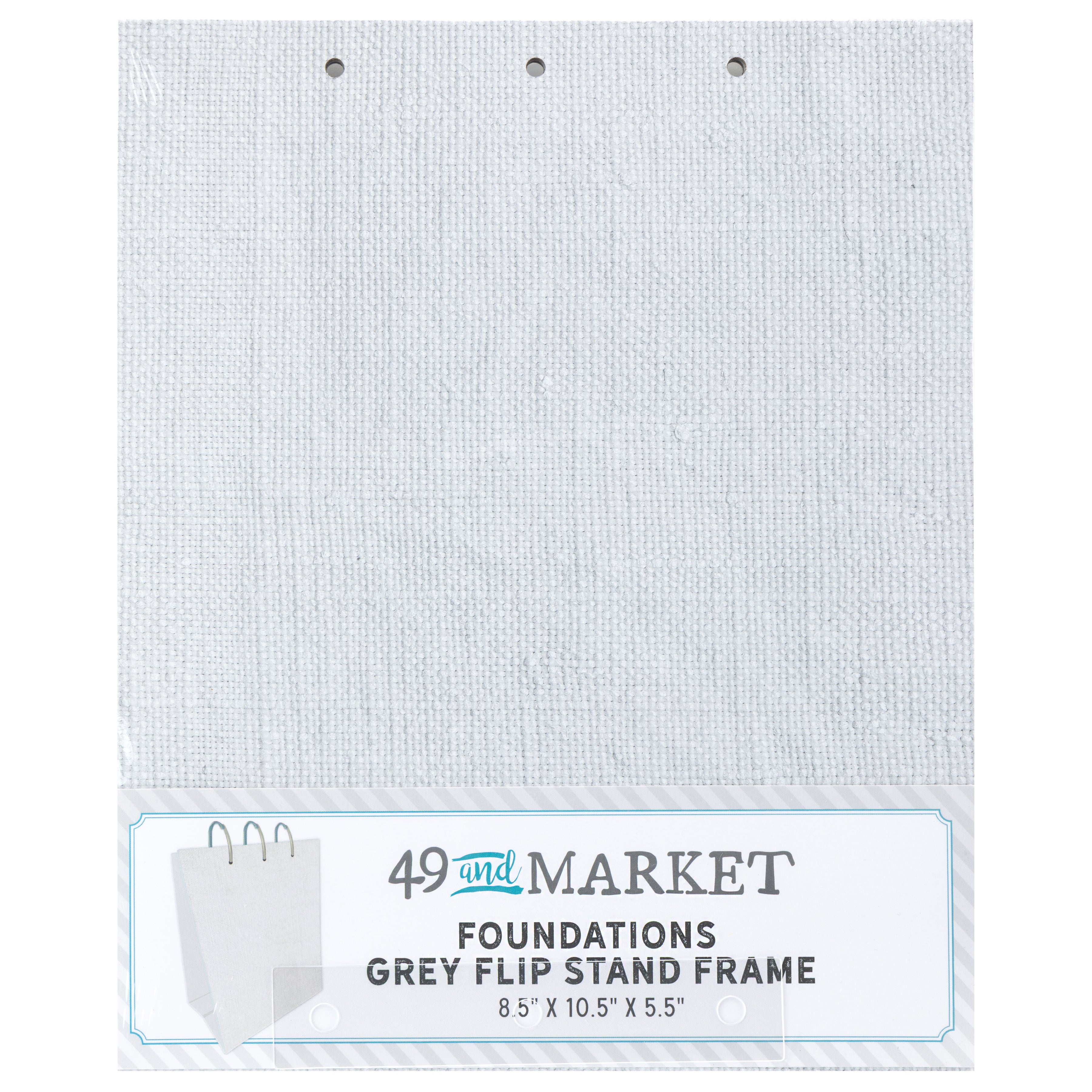 Showcase your cherished memories and creative projects with the Flip Stand Frame in Grey. This versatile 8.5" x 10.5" free-standing chipboard frame features a stylish, neutral grey canvas pattern, designed to effortlessly coordinate with any decor or project theme. The set includes three 2.5" metal binder rings and a handy hole punch template, providing everything you need to easily assemble and display your favorite photos, art, or scrapbooked pages in a dynamic, flip-through format.