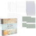 Album measures 8.5 x 9" with a hefty D-ring binder mechanism (2-holes spaced 80mm apart - coordinates with Items IFP-29192 and IFP-29208 sold separately). Album set includes eight thick white cardstock pages; two single pocket pages and two 4" x 6' flip pages. In addition to white cardstock flips and pages, there are two sheets of file folder tabs and reinforcement circles in soft blue coloring as well as four clear, plastic page protectors (1 each - full 6" x 8"; two 4" x 6" pockets; two 3" x 4" and one 4" x 6"; four 3" x 4")