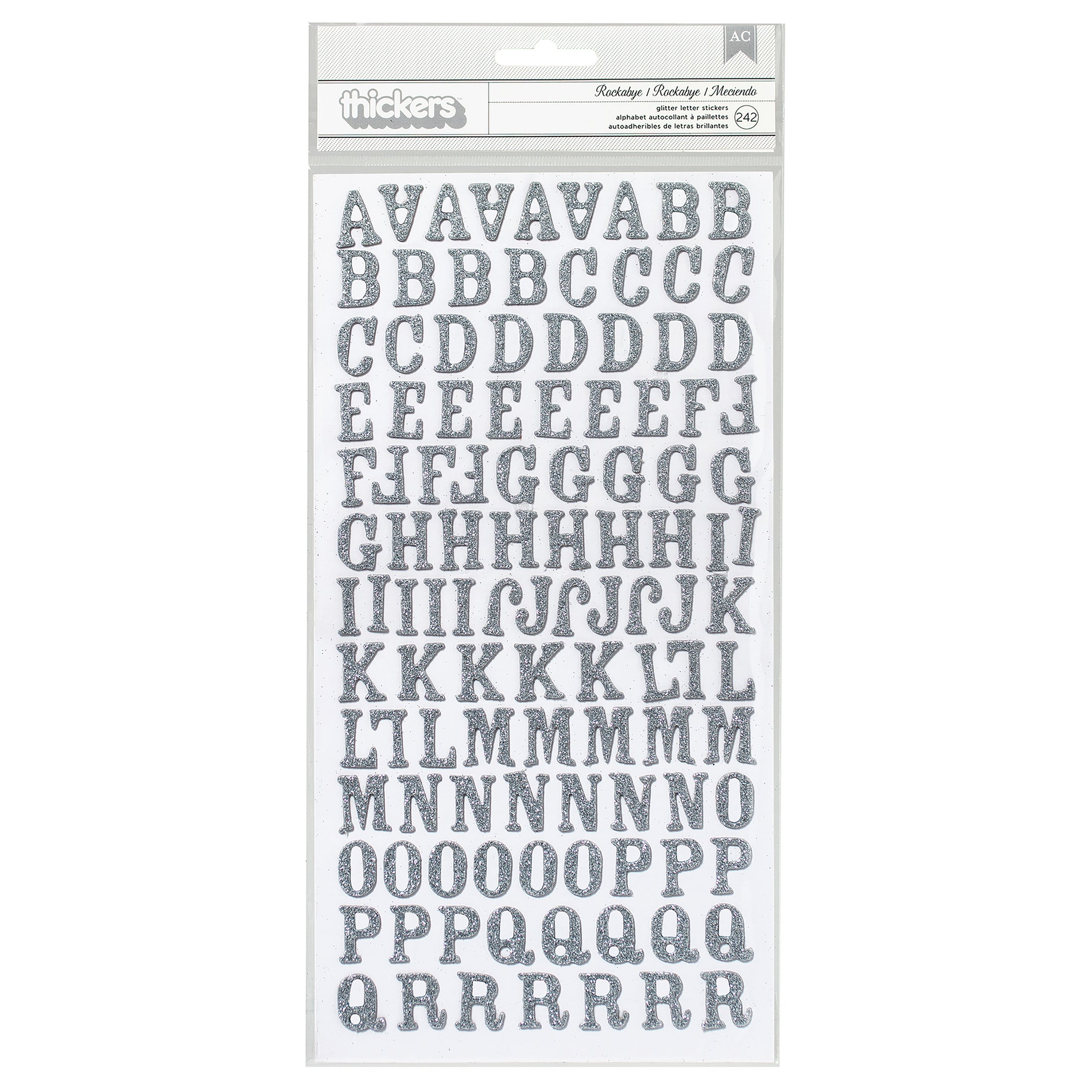 AC Chipboard Alphabet Stickers - Rockabye, Silver Glitter, 242pcs