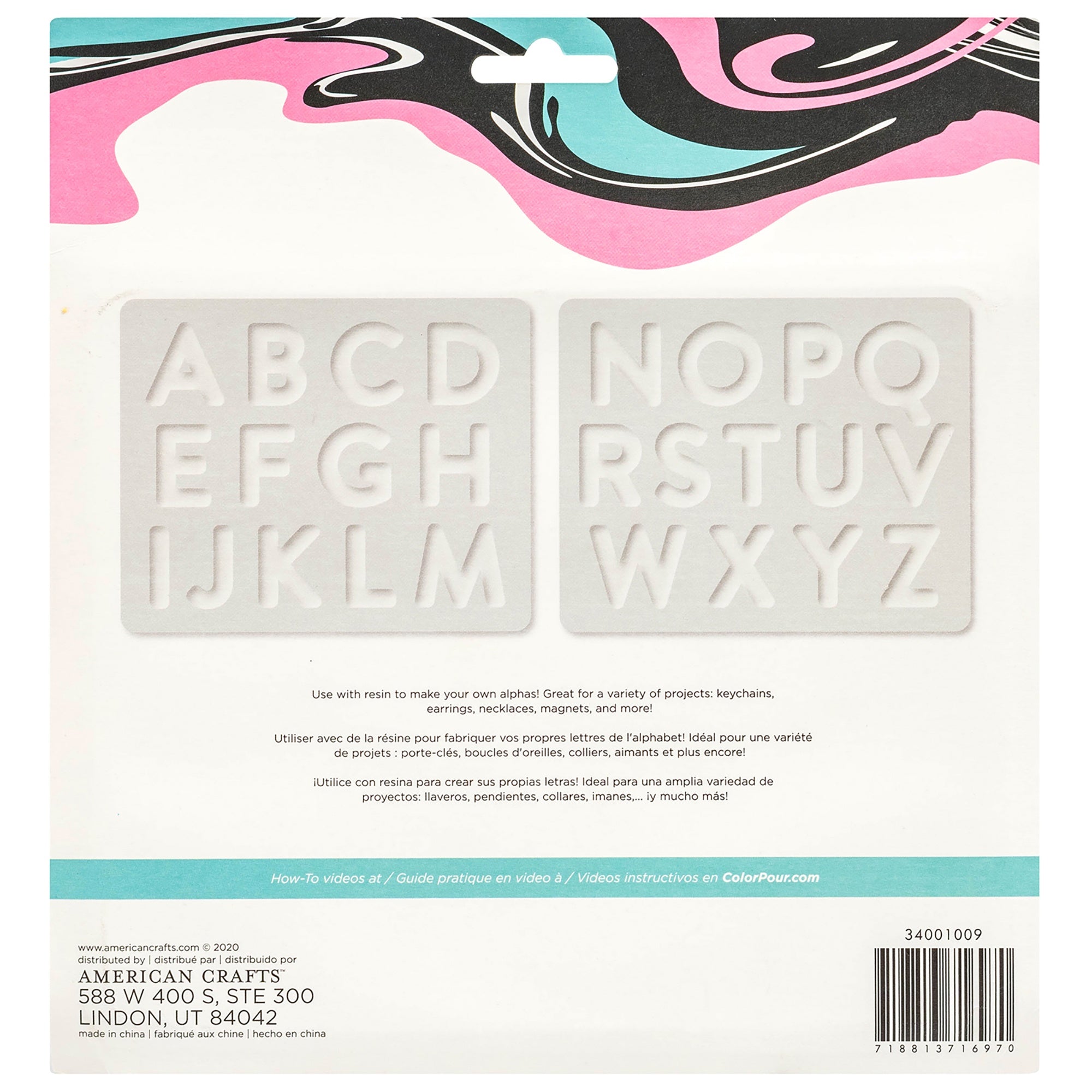 Easily create unique resin projects with this mold! Use it to make your own alphabet letters for keychains, earrings, necklaces, magnets, and more! This package includes one set of alphabet letter molds (2 piece). Use dyes and mix-ins to customize the look of your resin projects! Imported.