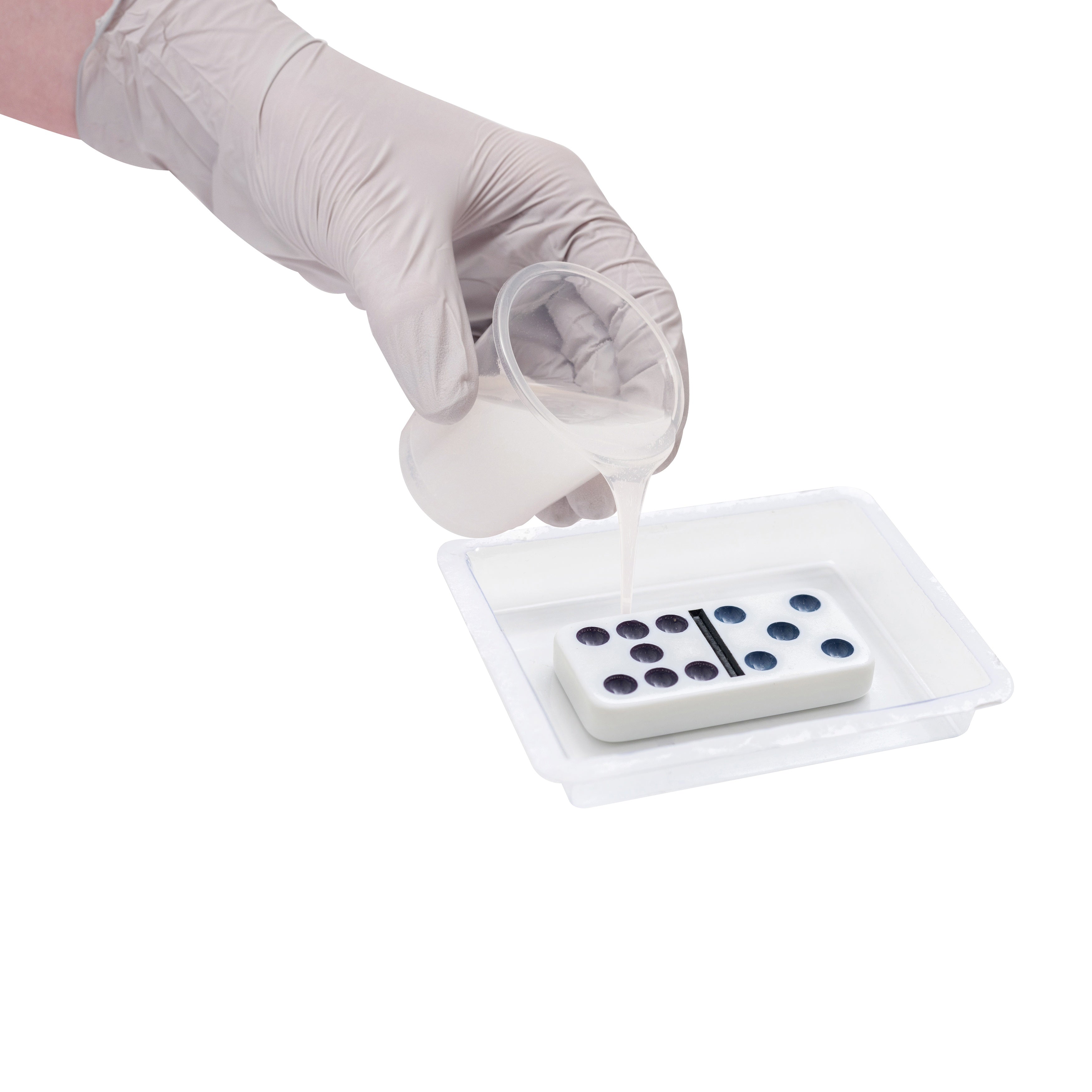 - Pour mixture in the container with the item. Make sure that it completely covers the item. Pour slowly to reduce bubbles.