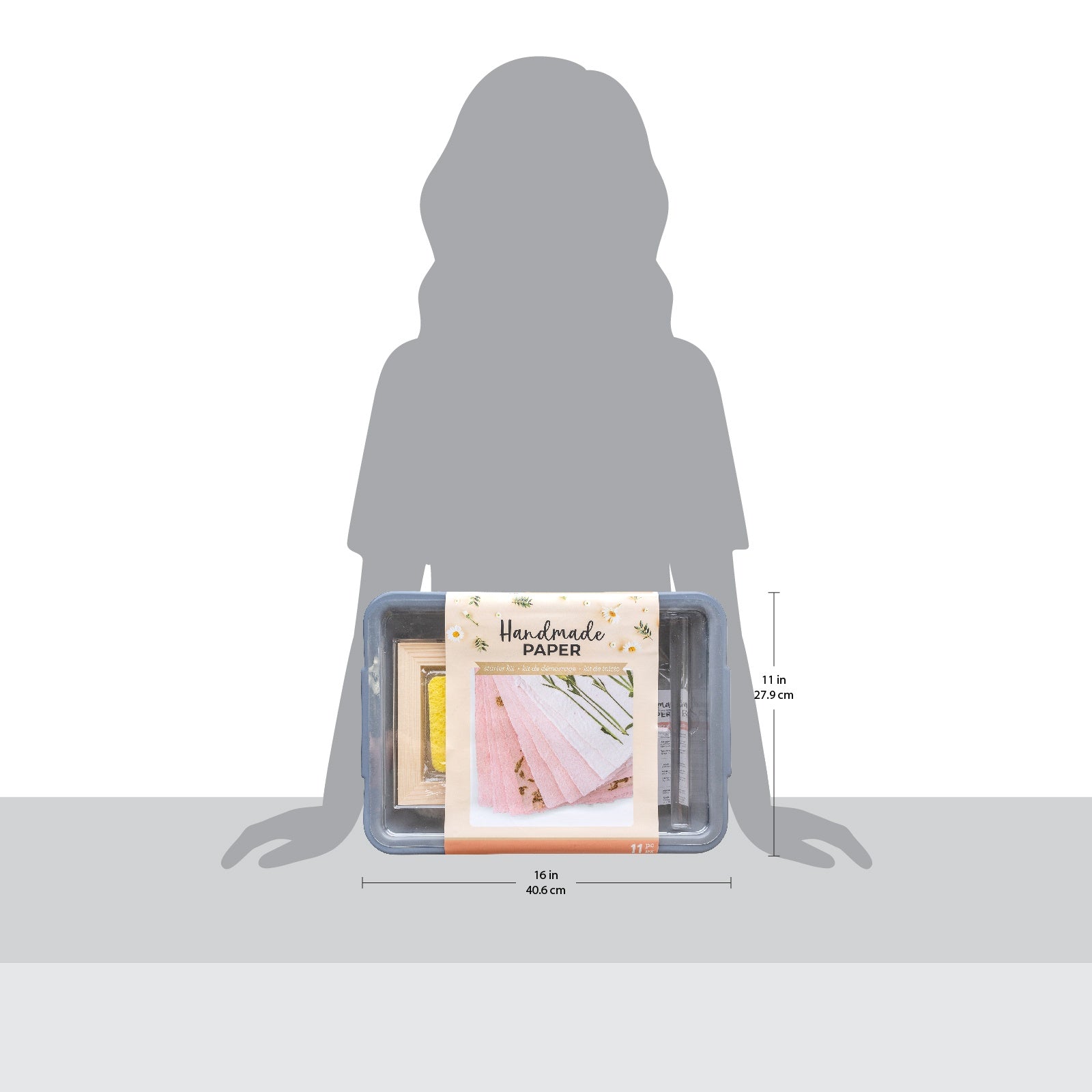 Dive into creativity with our Handmade Paper Starter Kit! It comes with all you need a tub, sponges, a mold & deckle, rolling pin, microfiber sheets, shredded paper, and shiny Gold pigment powder. Whether you're a pro or just starting, this kit makes crafting your own unique paper easy and fun. Includes a plastic tub, 2 sponges, 1 mold & deckle, 1 rolling pin, 4 microfiber sheets, shredded paper, and gold pigment powder. 11 pieces.