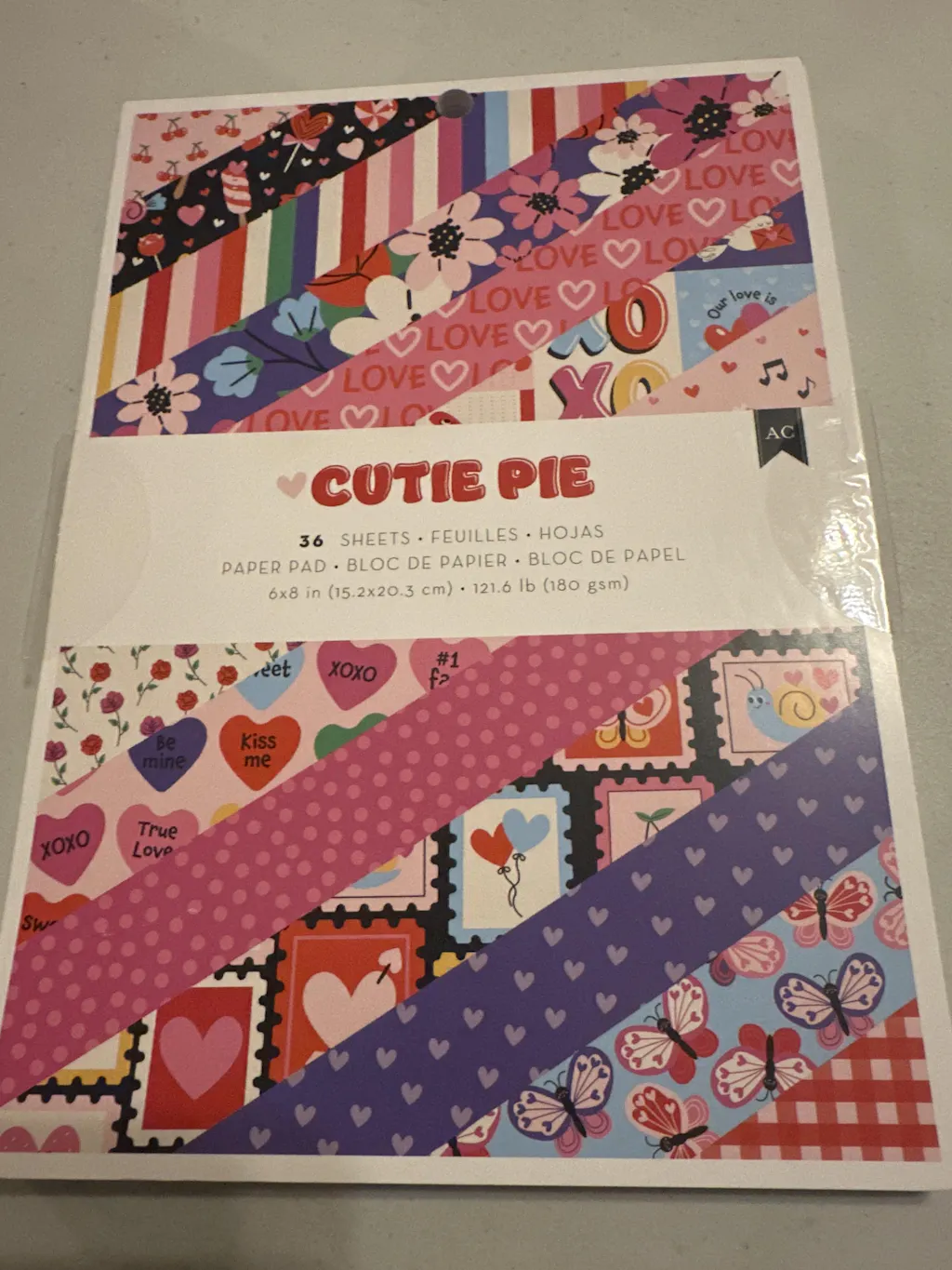 Cutie Pie by American Crafts is a playful collection filled with all things treats, butterflies, hearts, and flowers. Fall head over heels with the colors, designed to add an extra dose of love and charm to your paper crafting projects! Start your next scrapbook, card, journal or planner project with beautifully patterned papers. Choose from a variety of colorful sheets and pair with stickers, washi tape, and more to customize your projects. This 6X8 inch paper pad has 36 sheets.