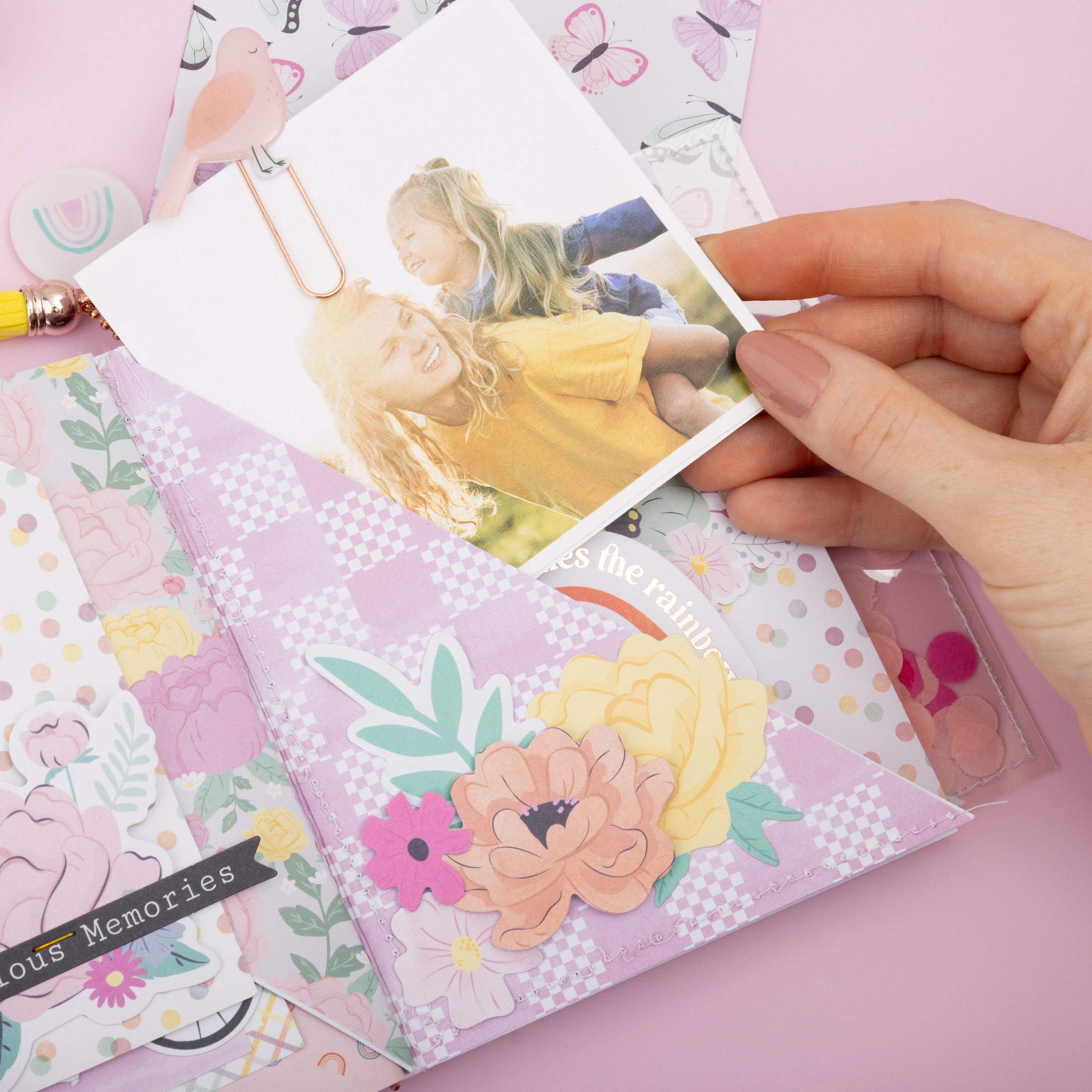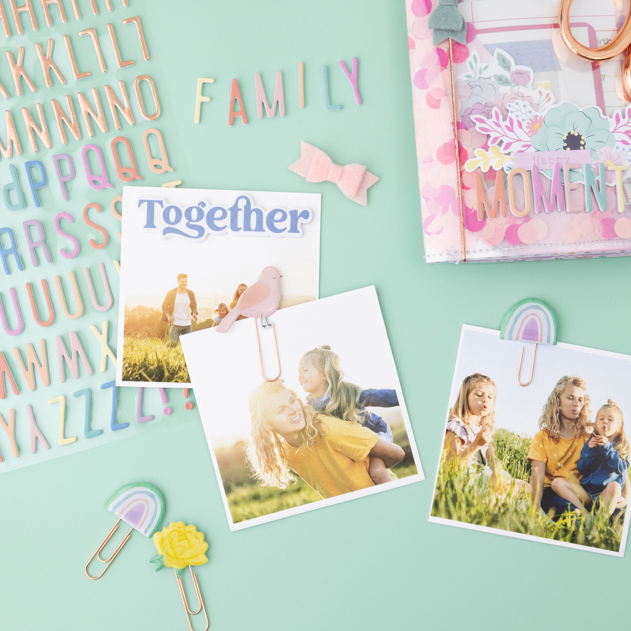 Celes Gonzalo's collection Rainbow Avenue is all about celebrating the connections we cherish. Through paper, it invites you to share, connect, and create lasting memories. Embrace the joy of unity, cherish memories, and infuse creativity with love through brightly colored paper covered in gingham, flowers, and butterflies. Add some adorable pieces to scrapbooks, cards, journals, and more for extra color and style. This pack includes 6 rose paper clips with different icons.