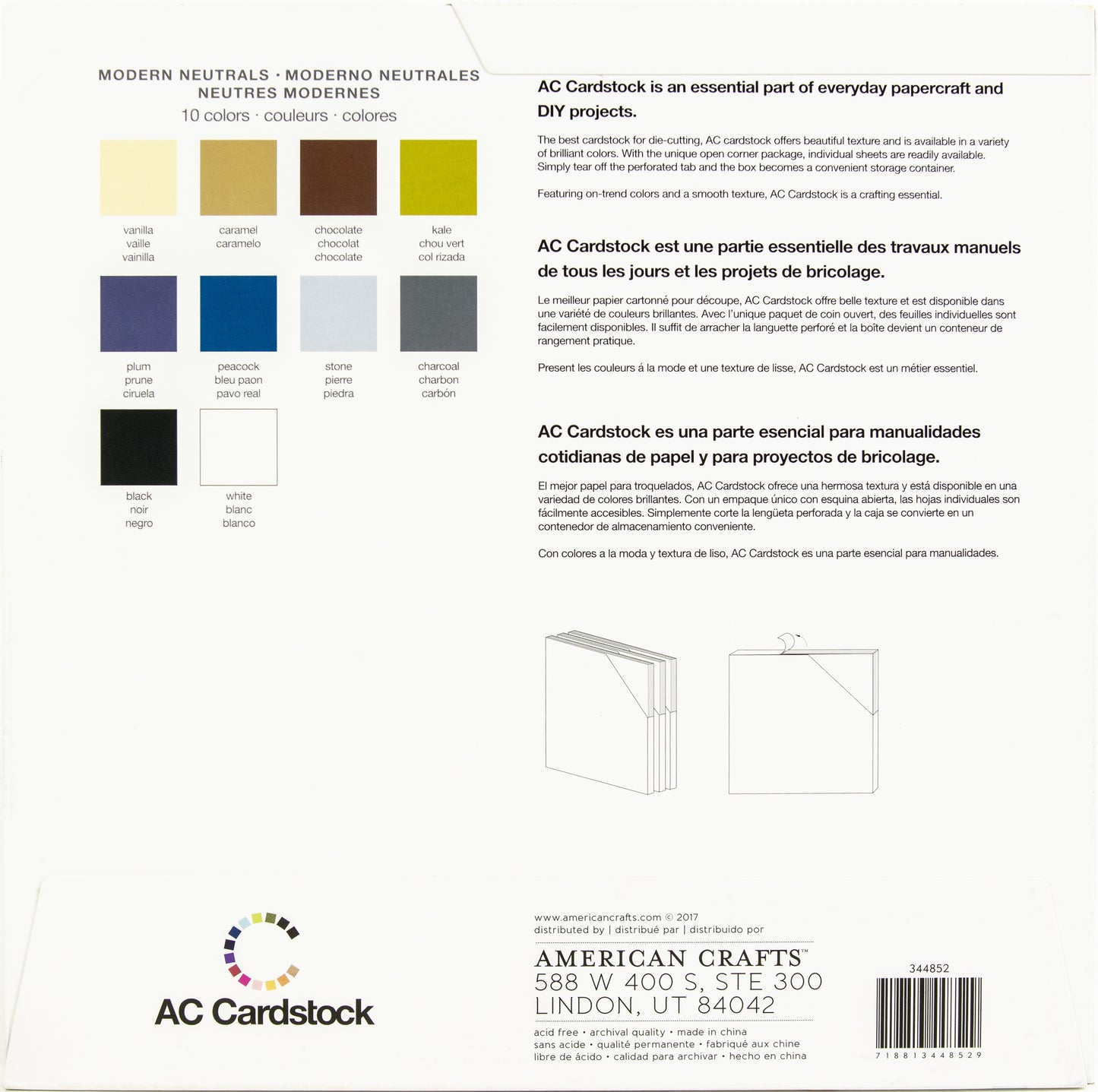 American Crafts Smooth Cardstock Pack 12x12" 60/Pkg-Modern Neutral, 6 Colors
