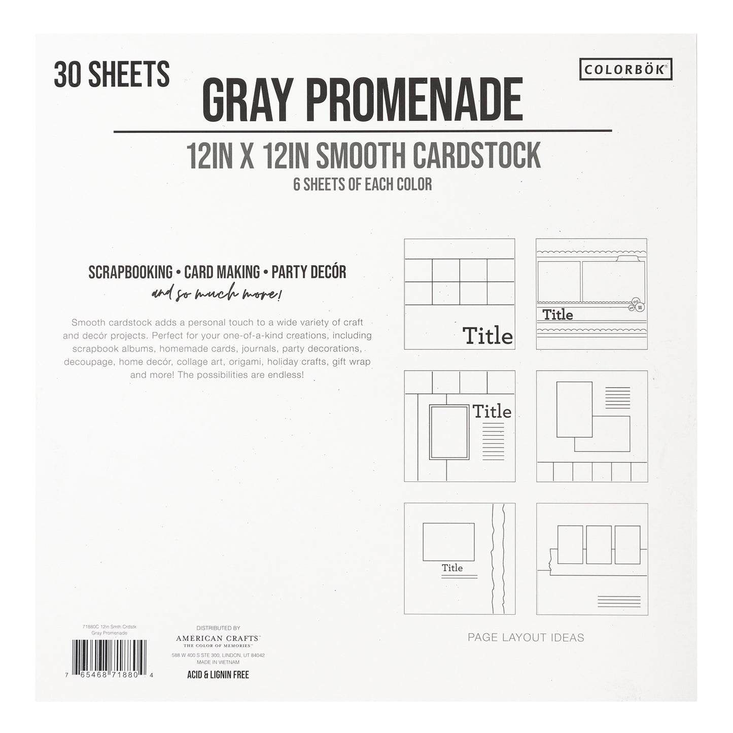 Colorbok 78lb Smooth 12x12" Cardstock - Gray Promenade, 30 sheets / 5 Colors