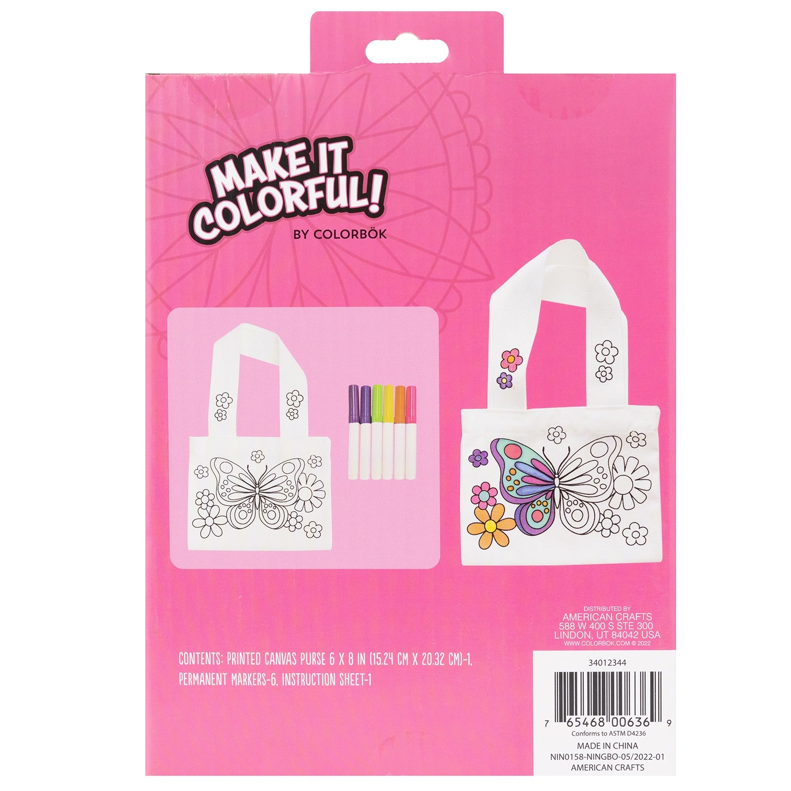 Uses the markers to make your puzzle all your own! Color it to fit your style This package contains 1 printed canvas purse, 6 permanent markers, and instructions. Recommended ages 6 years and up. WARNING: Choking Hazard. Not suitable for children under 3 years. Imported.