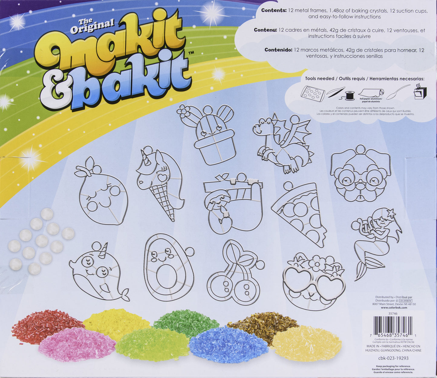 Create colorful suncatchers with this fun kit! This 14x12x2 inch package contains 12 metal frames, 1.48oz of baking crystals, 12 suction cups, and easy-to-follow instructions. Conforms to ASTM D 4236. Recommended for ages 8 and up. Imported.