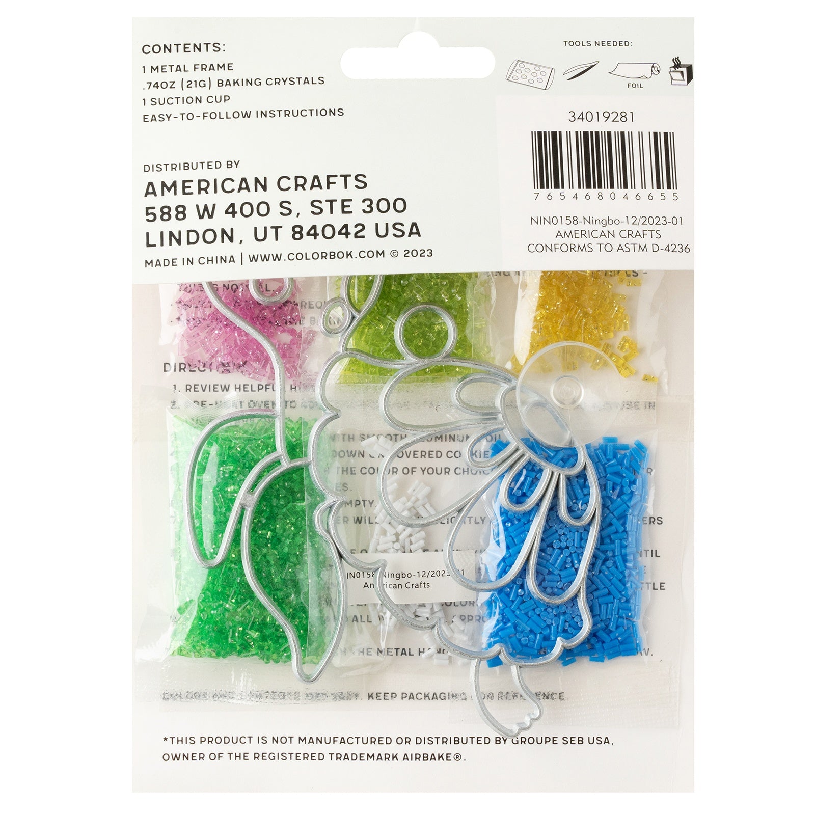 Everything you need to make a stained glass look sun catcher. Just add the crystals to the frame and bake in the oven. This package contains metal frame, baking crystals, suction cup and easy-to-follow instructions. Recommended ages 8+. WARNING: choking hazard - small parts. Not recommended for children under 3.