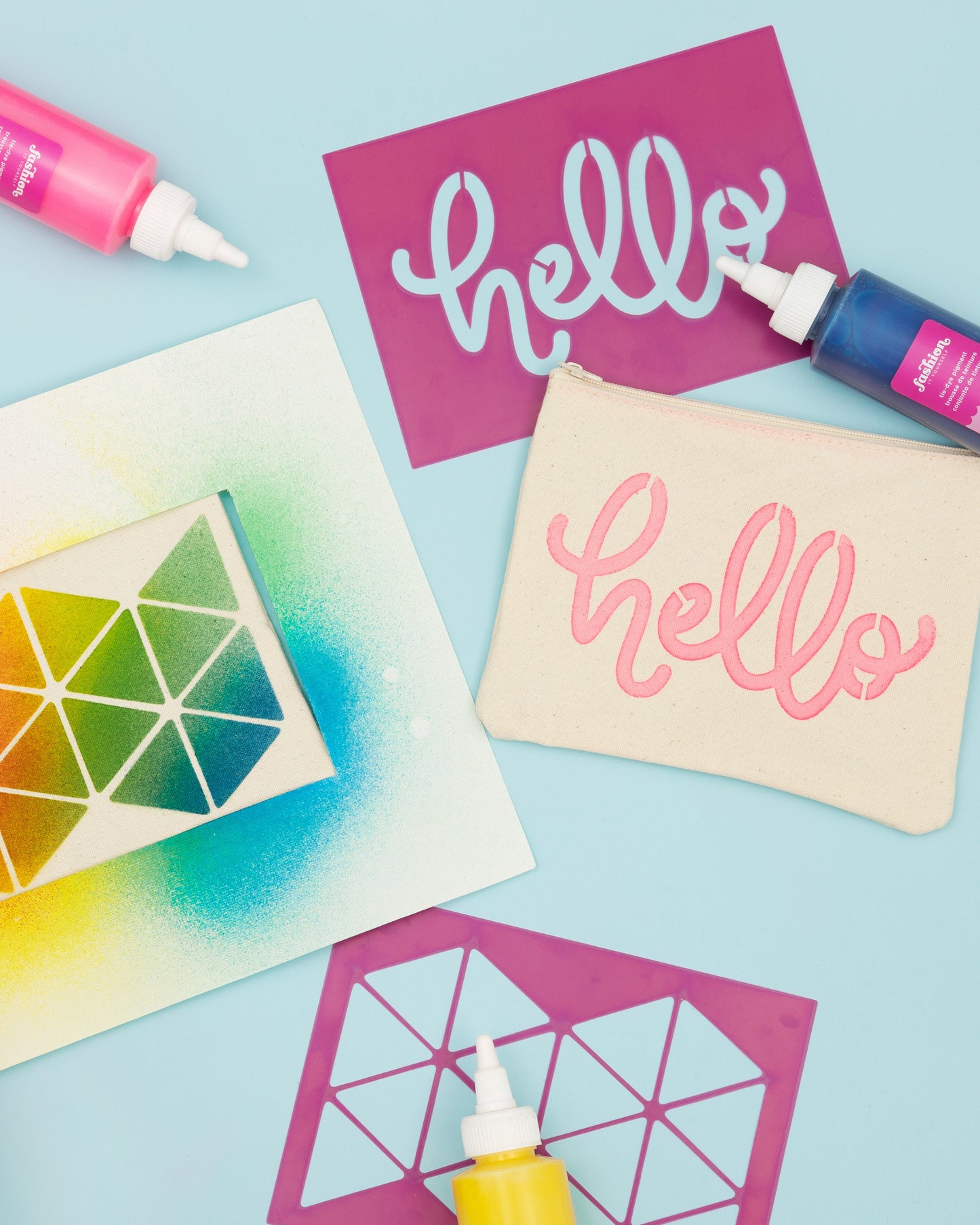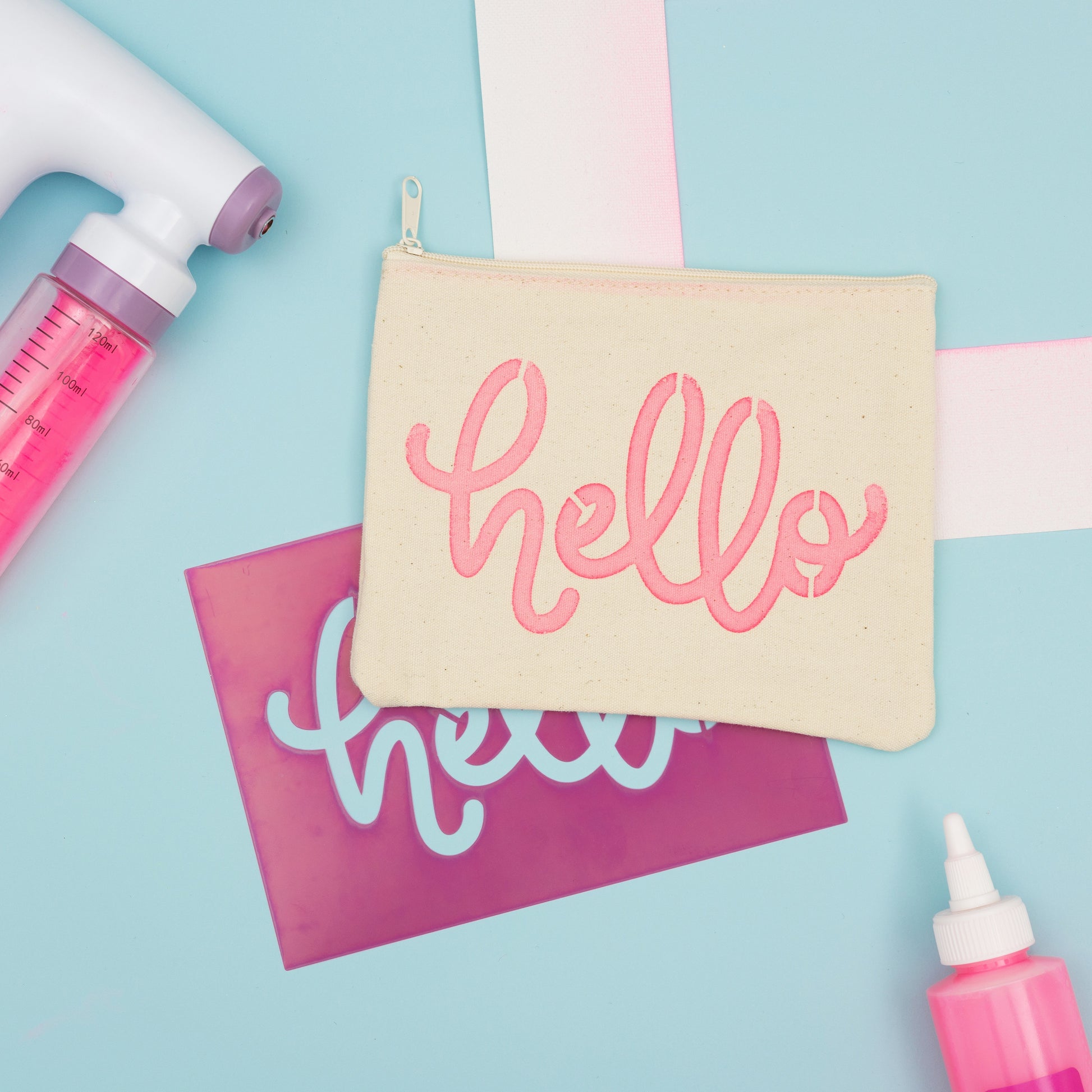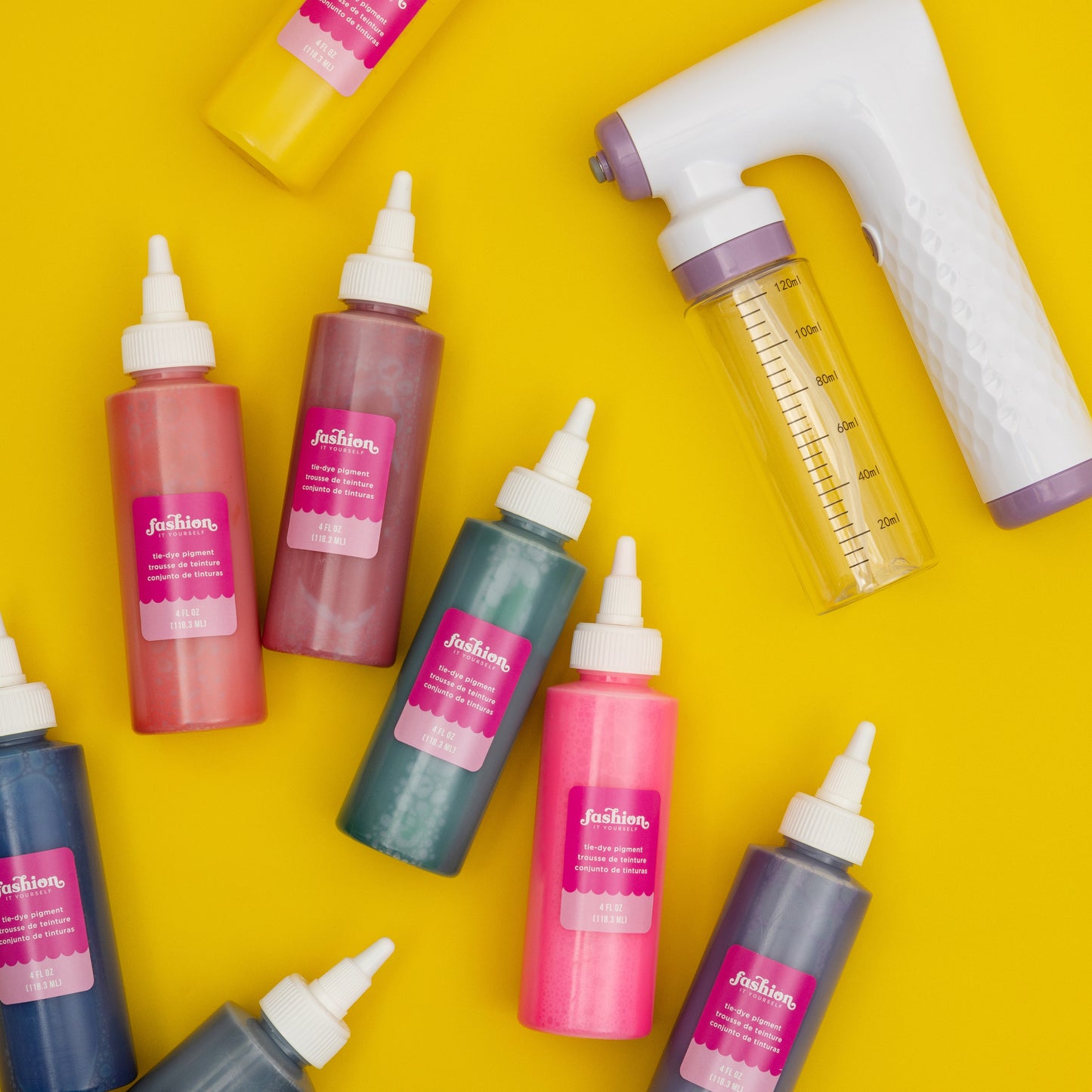Create wearable works of art with this airbrush kit by Damask Love! It's perfect for making your own designs on jackets, bags, and more. Just set up the air brush using the instructions in the booklet, then pick a stencil and place it and the stencil mask onto your project. Spray the dye in a sweeping motion, let it dry and wear your design! INCLUDES: 1 handheld air brush tool, 8 tie dye pigments, 1 canvas pouch, 3 flexible stencils, and 1 stencil mask. Imported.