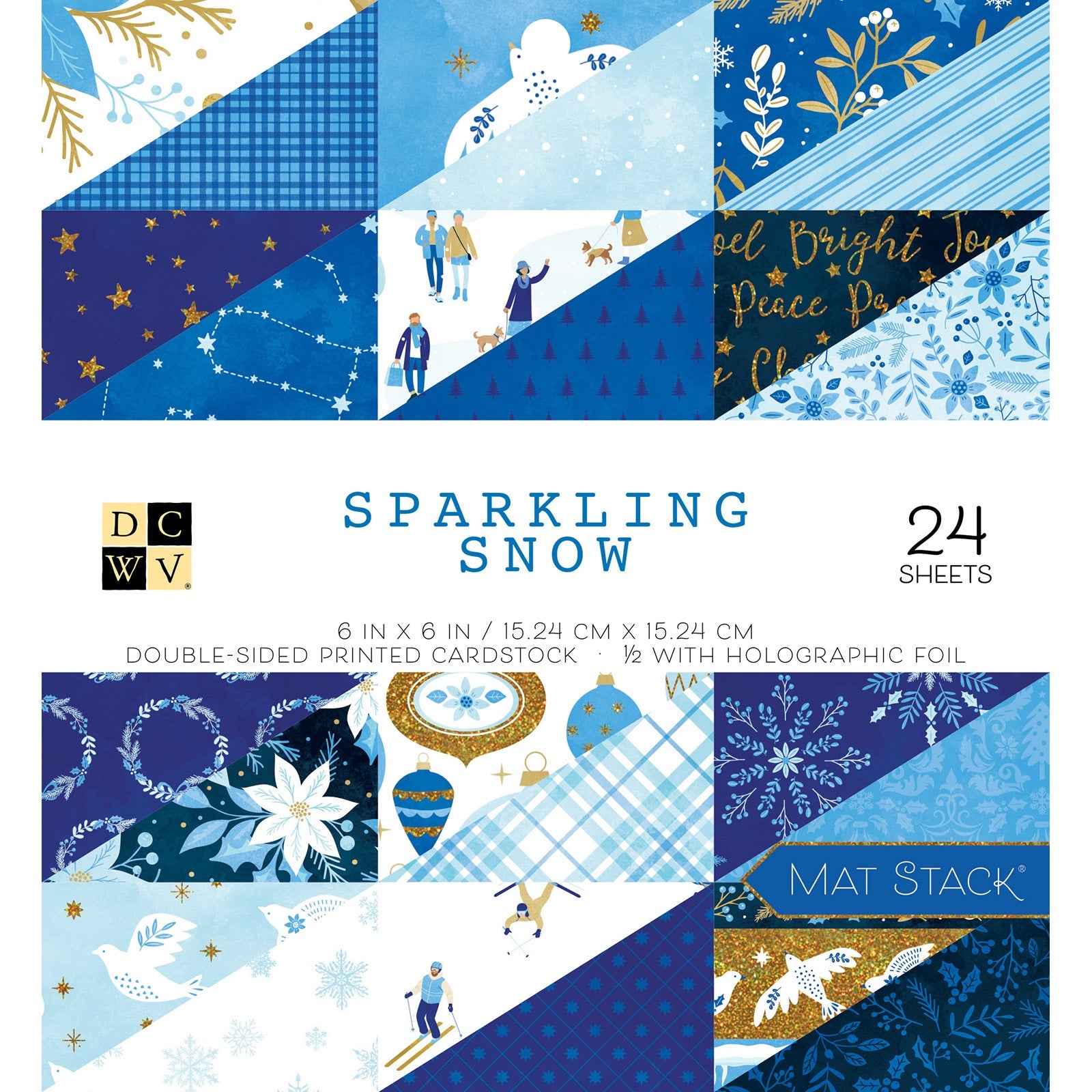 Start your project off right with the perfect paper for scrapbook pages, greeting cards, bookmarks, gift cards, mixed media and much more! Mat stacks are the easy way to mat pictures, create greeting cards or use as the base to smaller scrapbook albums. This package contains one DCWV Double-Sided Cardstock Mat Stack - Sparkling Snow with Holographic Foil, 24 sheets (two each of 12 designs), 6x6 inches. Imported.