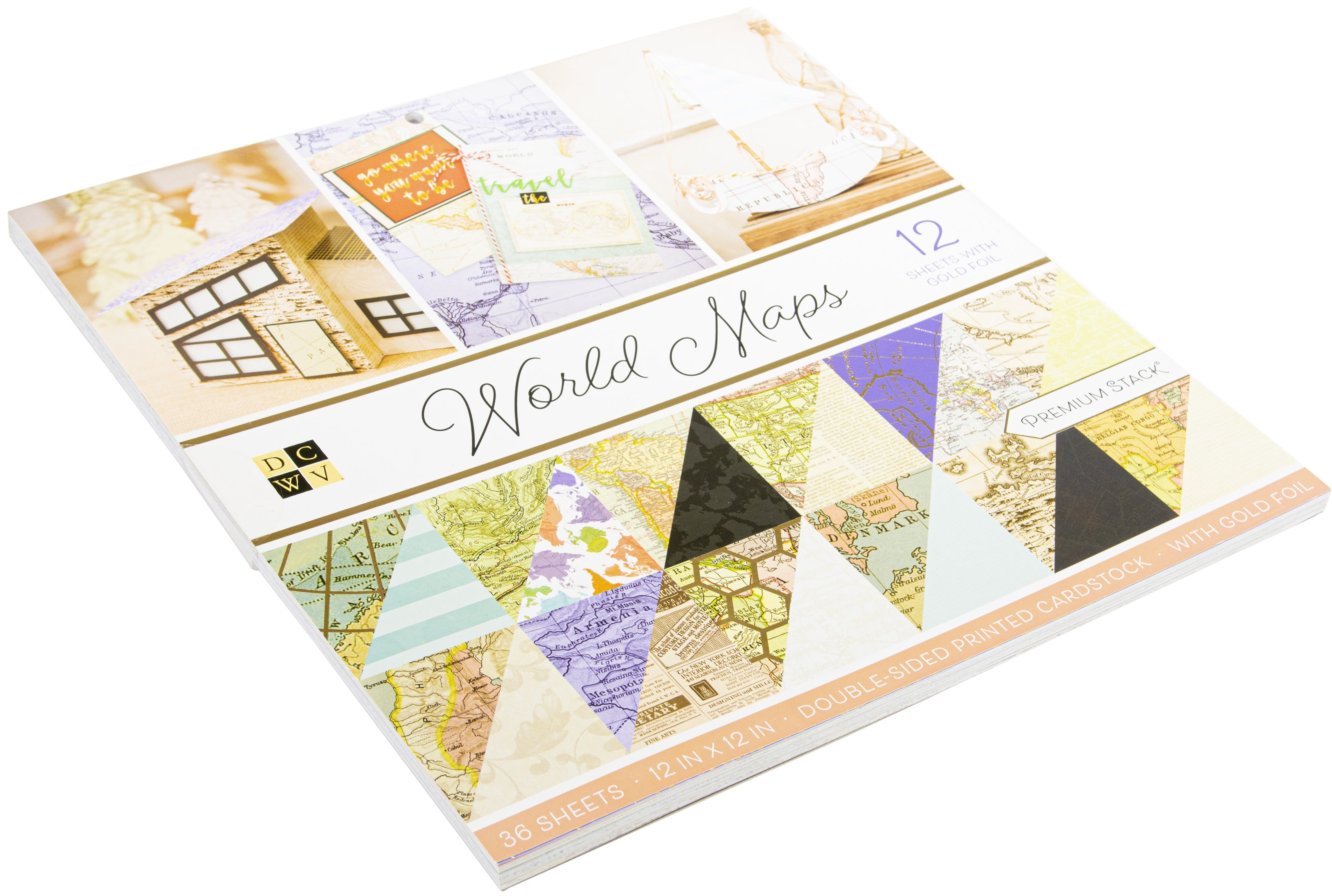 DCWV Double-Sided 12x12" Cardstock Stack - World Maps with Foil Accents