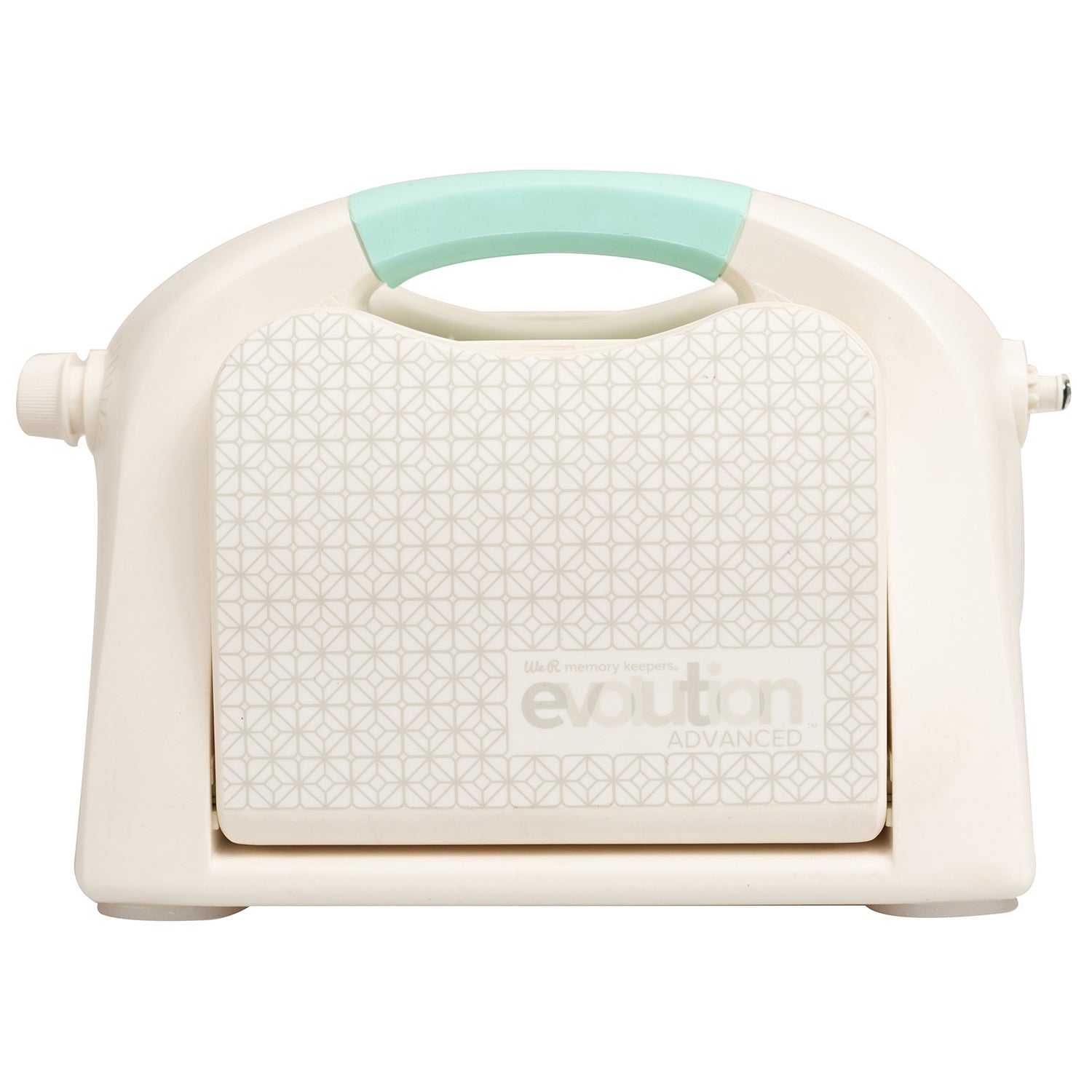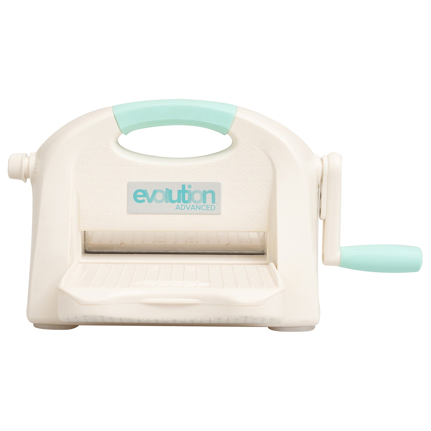 We R Makers Evolution Advance Die Cutting/Embossing Machine. Perfect for DIY craft projects including card making, organization, home-decor, scrapbooking, parties and more! This 10x13-1/4x6-1/4 inch package contains one die-cutting and embossing machine with a height adjustment gear system that eliminates confusing mat combinations, an extra built-in storage perfect for dies, an easy fold up design for easy storage and portability, a cutting/embossing platform, one self-healing mat and ten cutting dies. Imported.