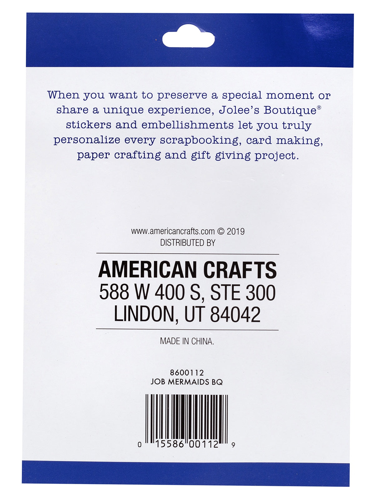 Stickers add the perfect finishing touch to your paper projects. They can be a fun embellishment, a whimsical accent or an elegant polish to scrapbook pages, greeting cards, mixed media and more. This package contains Jolee's Boutique Themed Stickers - Mermaids Dimensional Embellishments, 12 pieces. Imported.