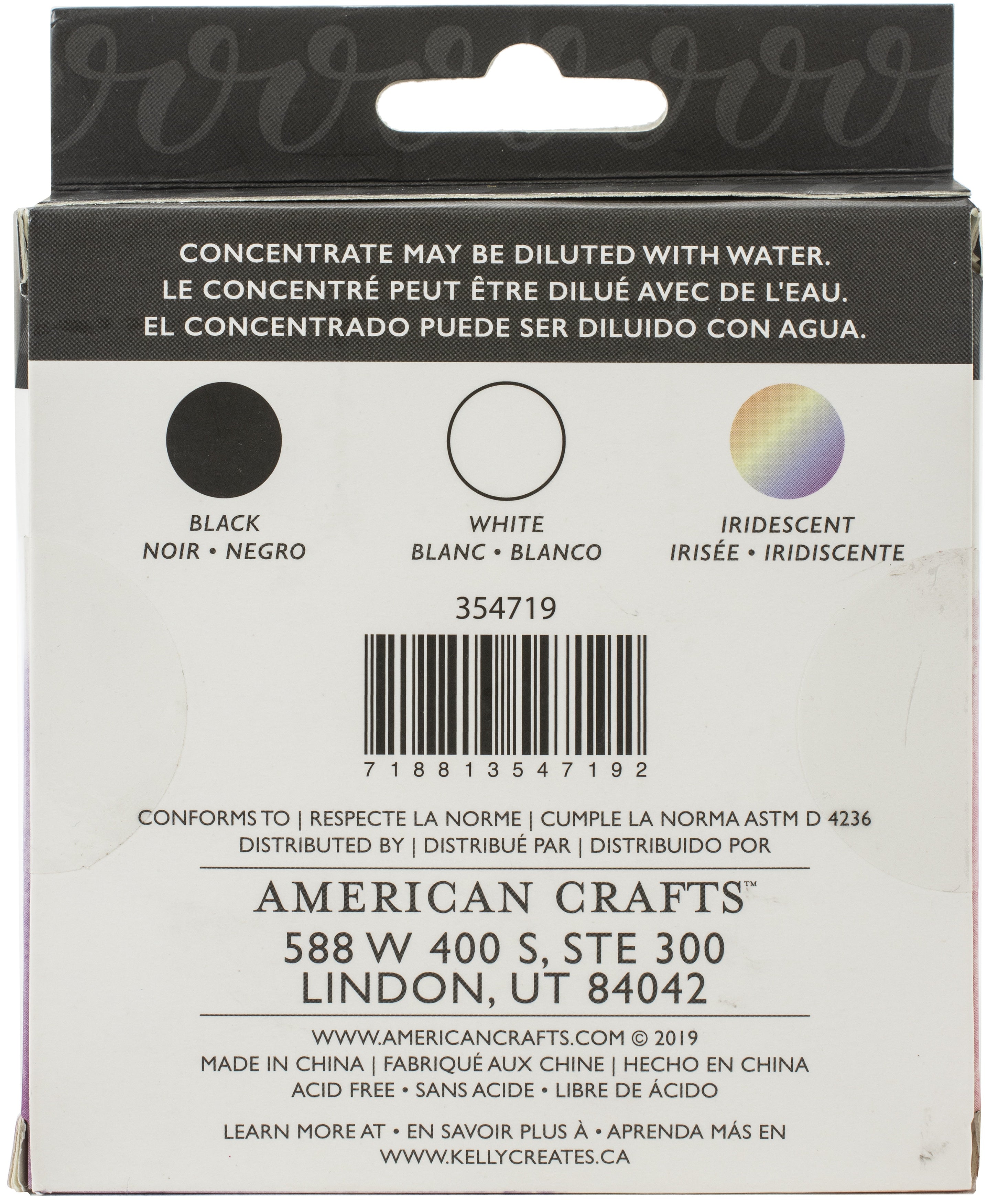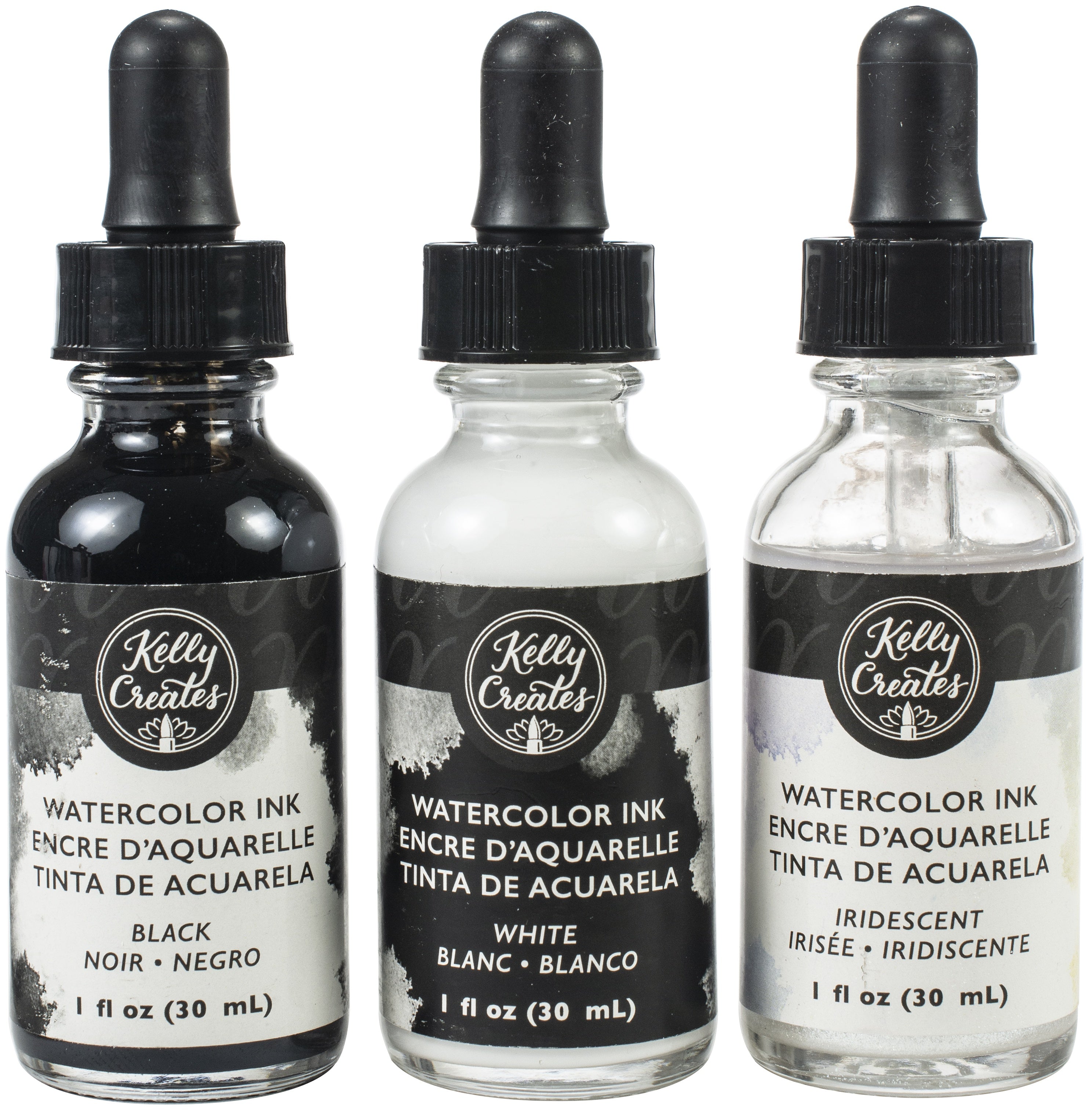 Kelly Creates Liquid Watercolor Set 3/Pkg-Black, White & Iridescent