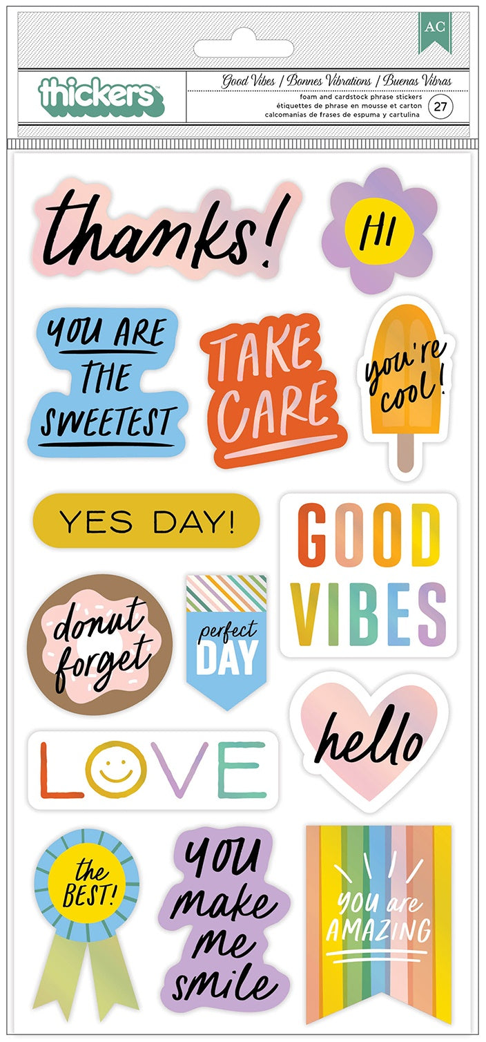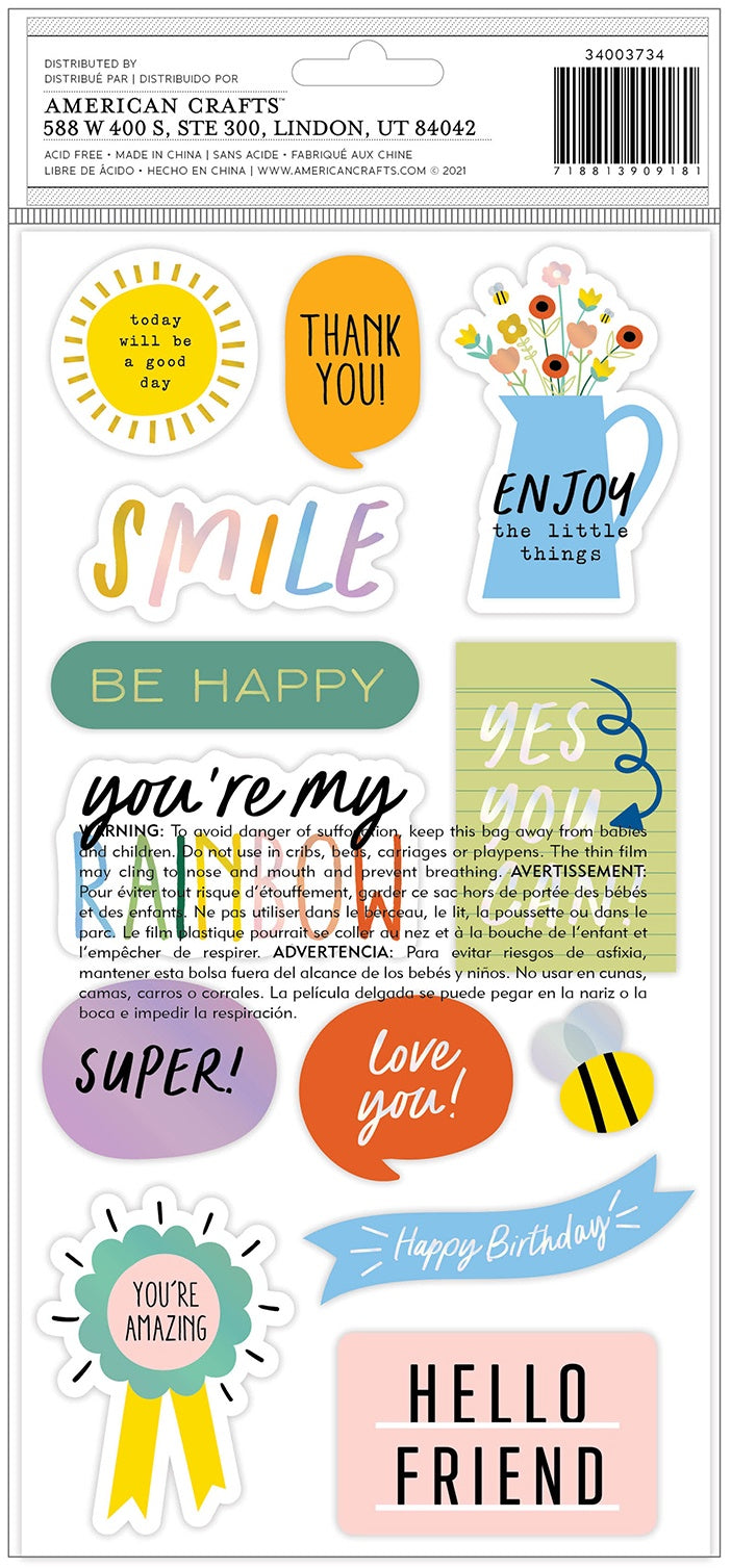 Stickers add the perfect finishing touch to your paper projects. Stickers can be a fun embellishment, a whimsical accent or add elegant polish to scrapbook pages, greeting cards, mixed media and more. This package contains Pebbles Kids At Heart Thicker Stickers - Foam Phrases, 27 pieces. Imported.