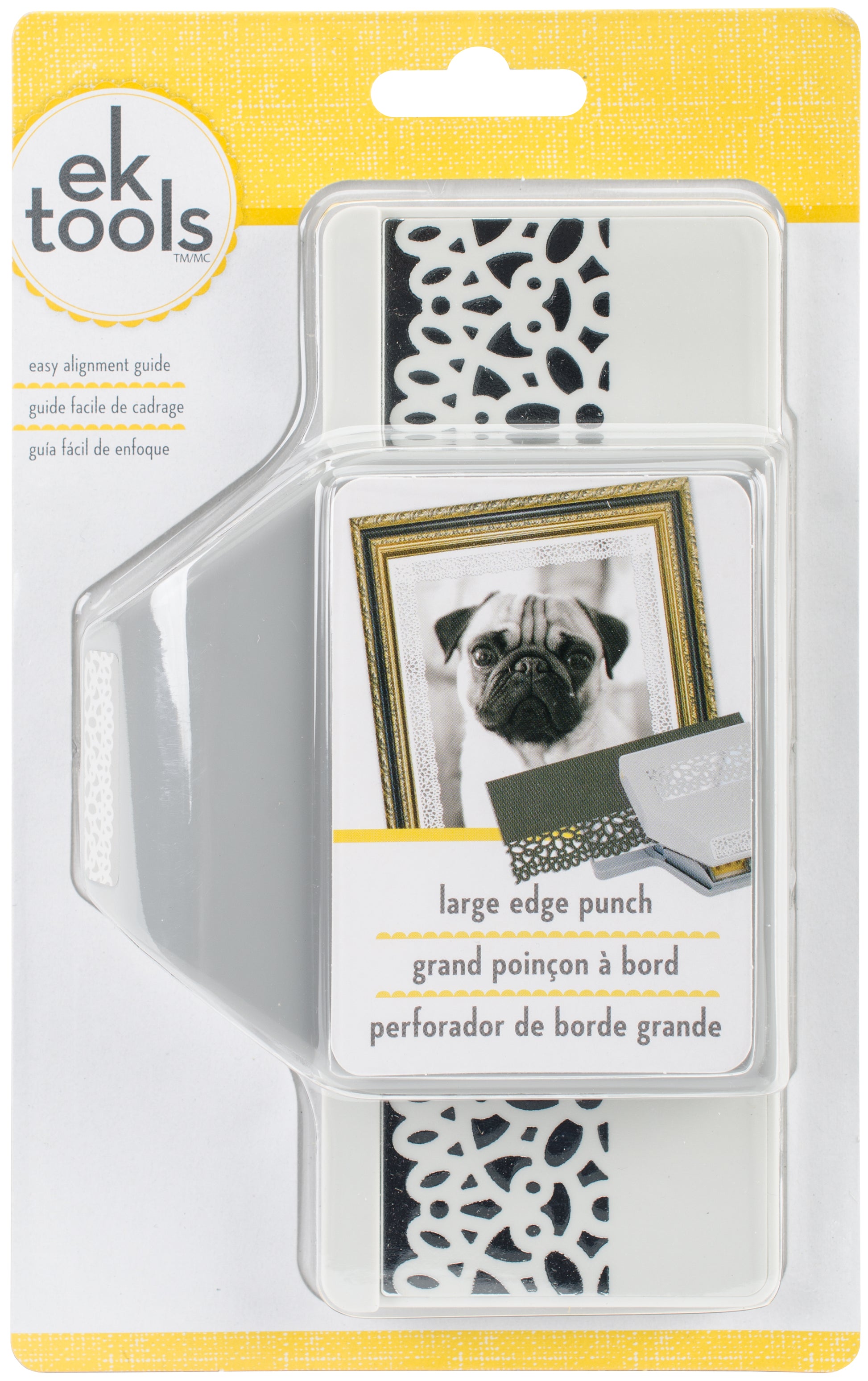 This punch creates a gorgeous border art! The Large Edge punch is easy to use and locks closed for simple and safe storage. This package contains one Large Edge Punch: Embroidery. Height of punched image is 1-1/4 inches, actual punch measures 4x6x1-1/4 inches. Imported.
