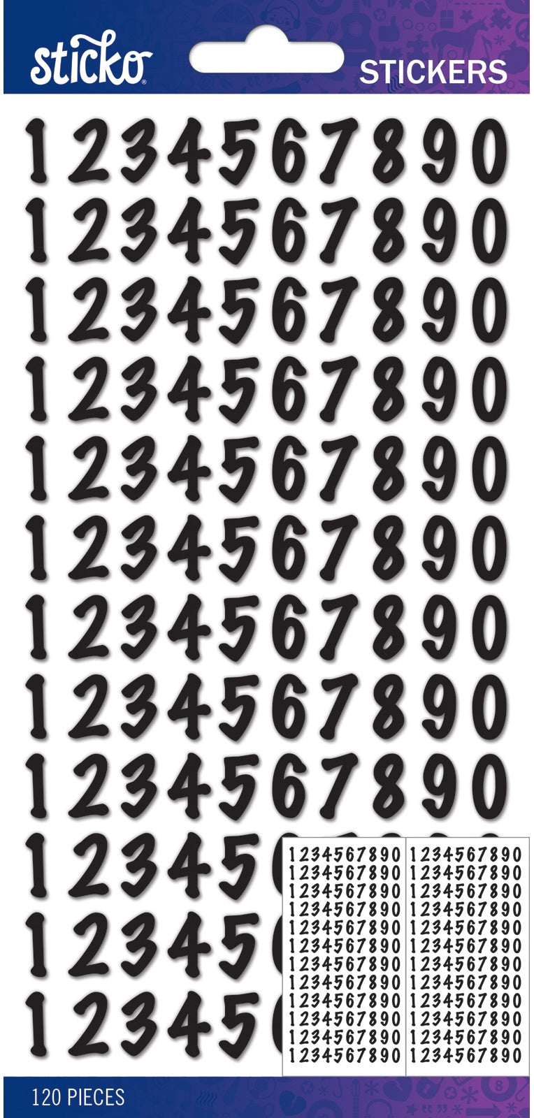 Stickers add the perfect finishing touch to your paper projects. Stickers can be a fun embellishment, a whimsical accent or add elegant polish to scrapbook pages, greeting cards, mixed media and more. This package contains Sticko Alphabet Stickers - Small Numbers, Black Dot, 120 pieces. Imported.