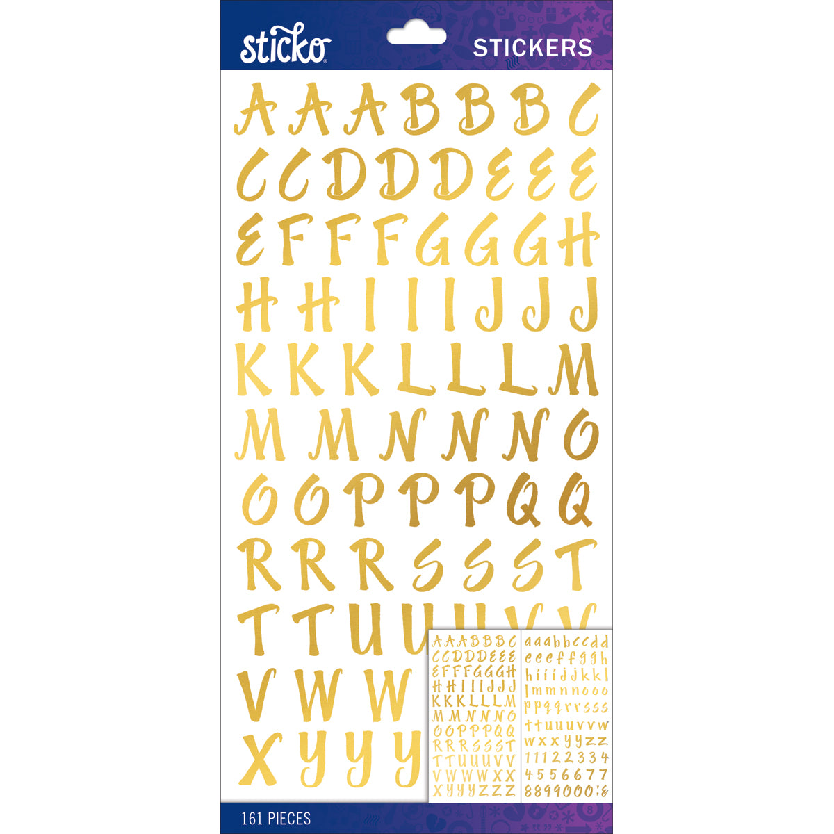 Sticko alphabet stickers are available in a variety of fonts and colors to fit any and every occasion. They are ideal for embellishing cards, scrapbook pages, craft projects and so much more. They make every project pop! This package contains Sticko Alphabet Stickers - Gold Foil Brush Small, 161 stickers. Imported.