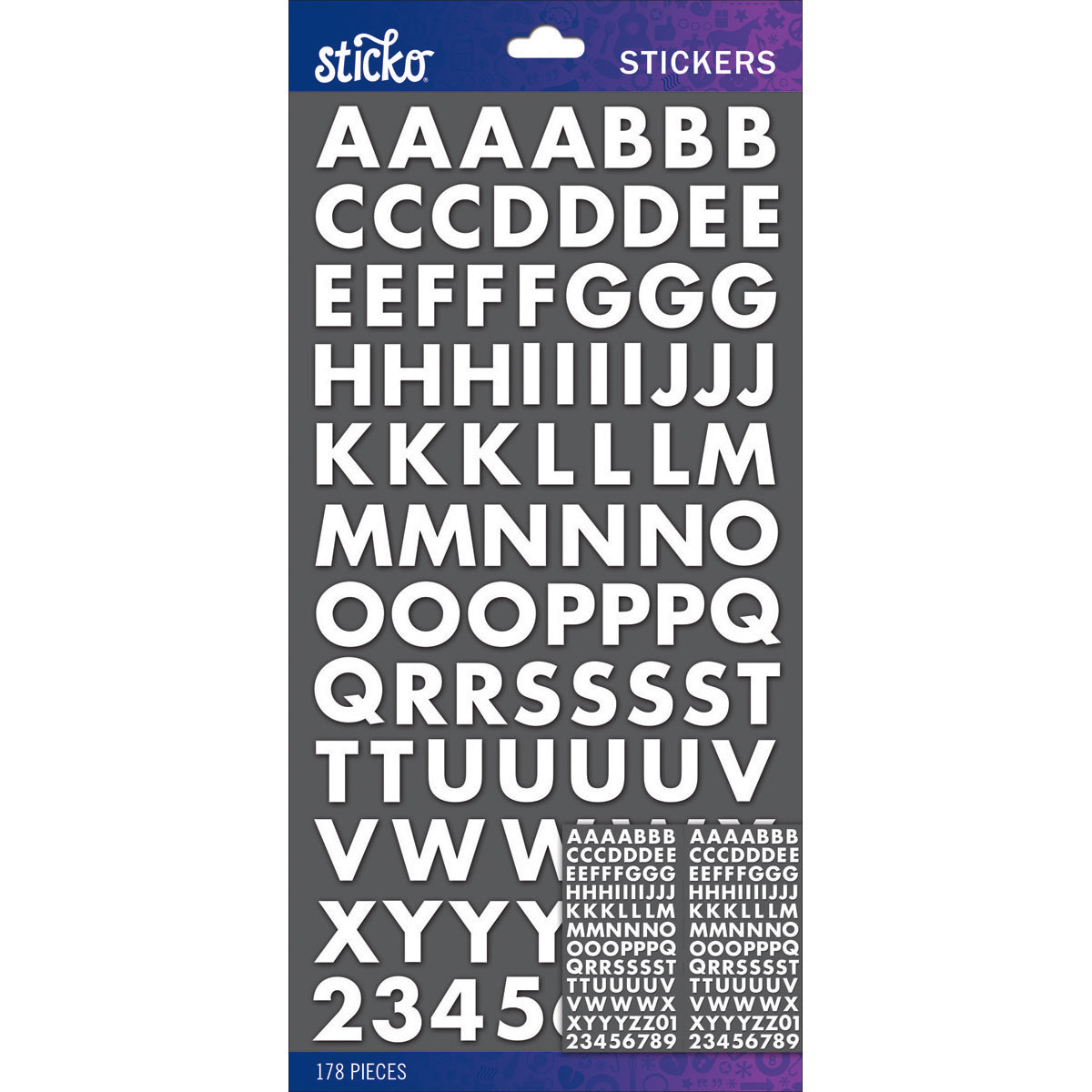 Sticko alphabet stickers are available in a variety of fonts and colors to fit any and every occasion. They are ideal for embellishing cards, scrapbook pages, craft projects and so much more. They make every project pop! This package contains Sticko Alphabet Stickers - White Futura Bold Small, 178 stickers. Imported.
