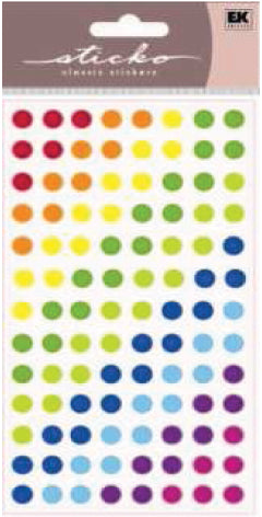 Stickers add the perfect finishing touch to your paper projects. Stickers can be a fun embellishment, a whimsical accent or add elegant polish to scrapbook pages, greeting cards, mixed media and more. This package contains Sticko Dimensional Stickers - Dots Brights, 104 stickers. Imported.