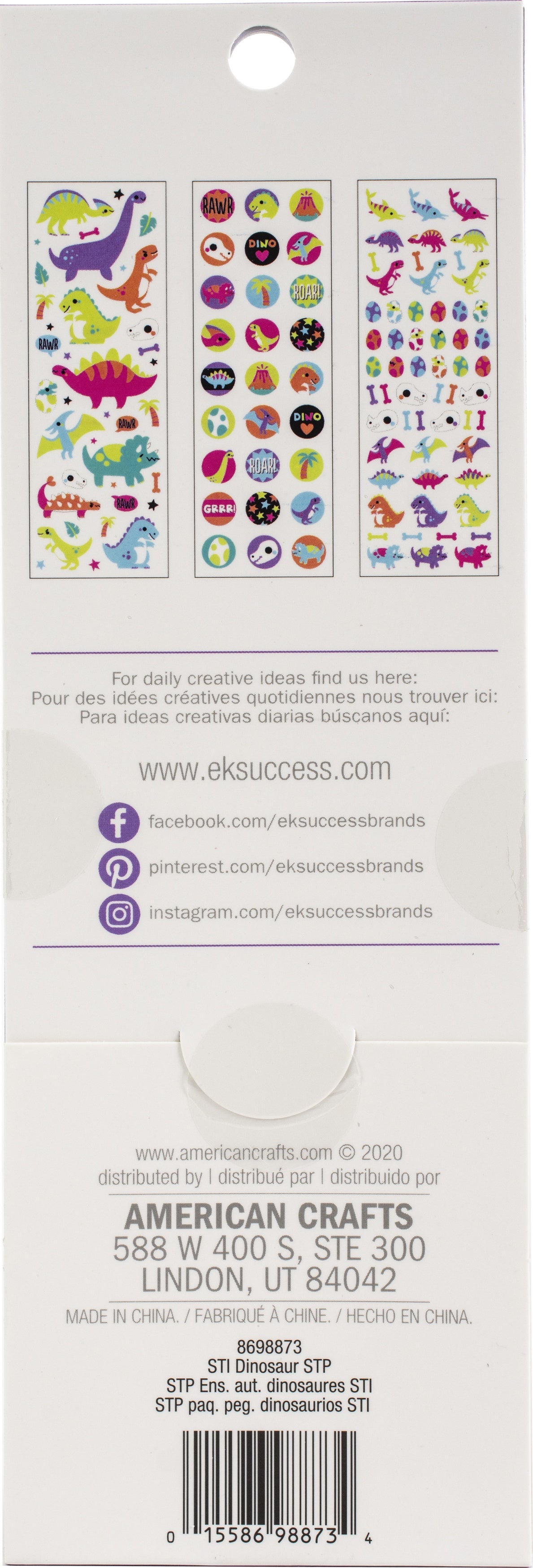 Stickers add the perfect finishing touch to your paper projects. Stickers can be a fun embellishment, a whimsical accent or add elegant polish to scrapbook pages, greeting cards, mixed media and more. This package contains Sticko Sticker Pack - Dinosaur, 123 pieces. Imported.