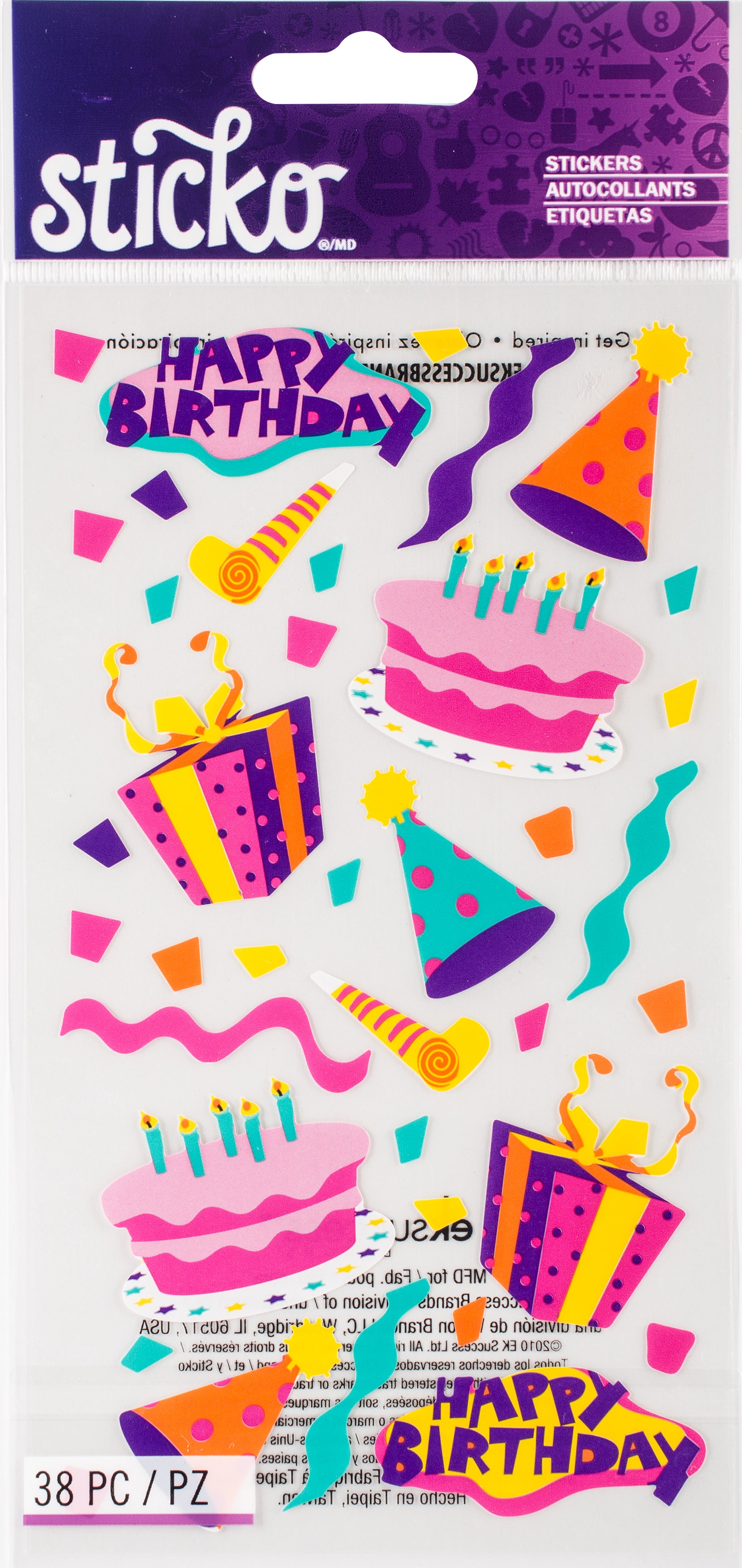 Sticko flat stickers are available in a variety of designs and themes to fit any and every occasion. They are ideal for embellishing cards, scrapbook pages, craft projects, and so much more. This package contains 38 stickers on one 3.75x6.75 inch backing sheet. Imported.