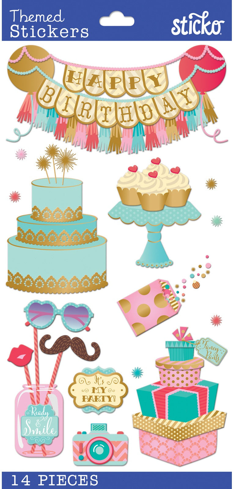 Sticko Stickers - Fancy Pants Birthday, 14pcs