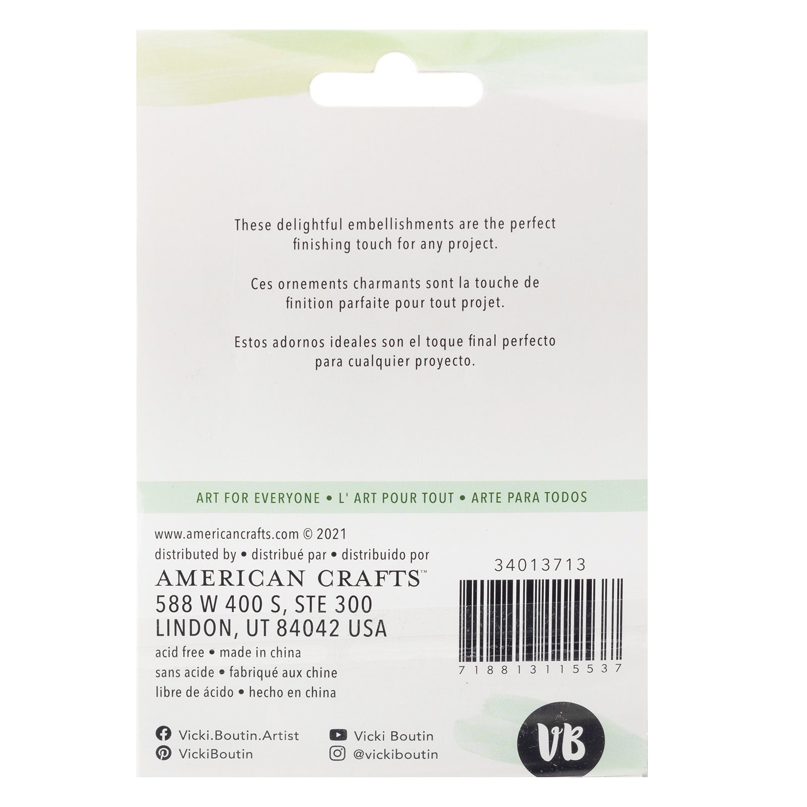 While you need the perfect paper to start your project, you also need the perfect embellishment to finish your project! Embellishments can add whimsy, dimension, color and style to greeting cards, scrapbook pages, altered art, mixed media and more. This package contains Vicki Boutin Evergreen & Holly Tassels with Charms, four pieces. Imported.