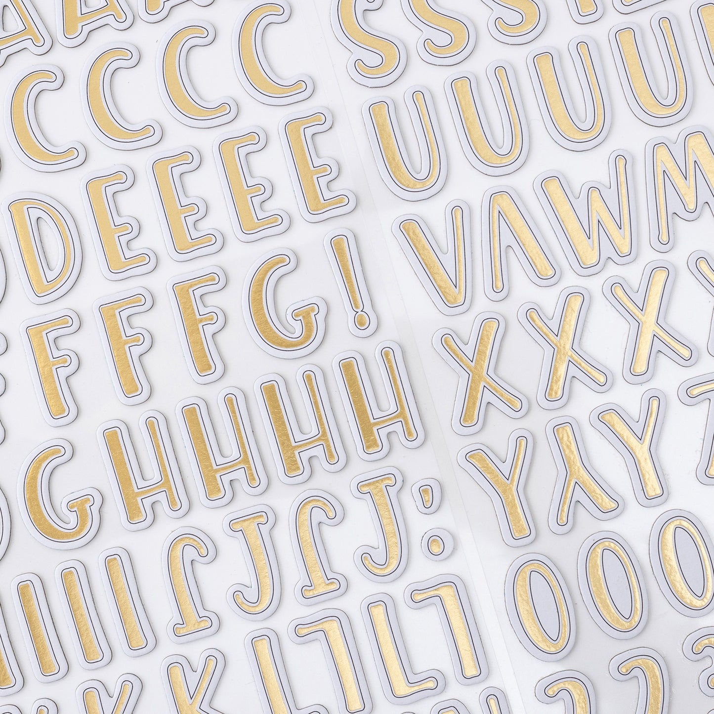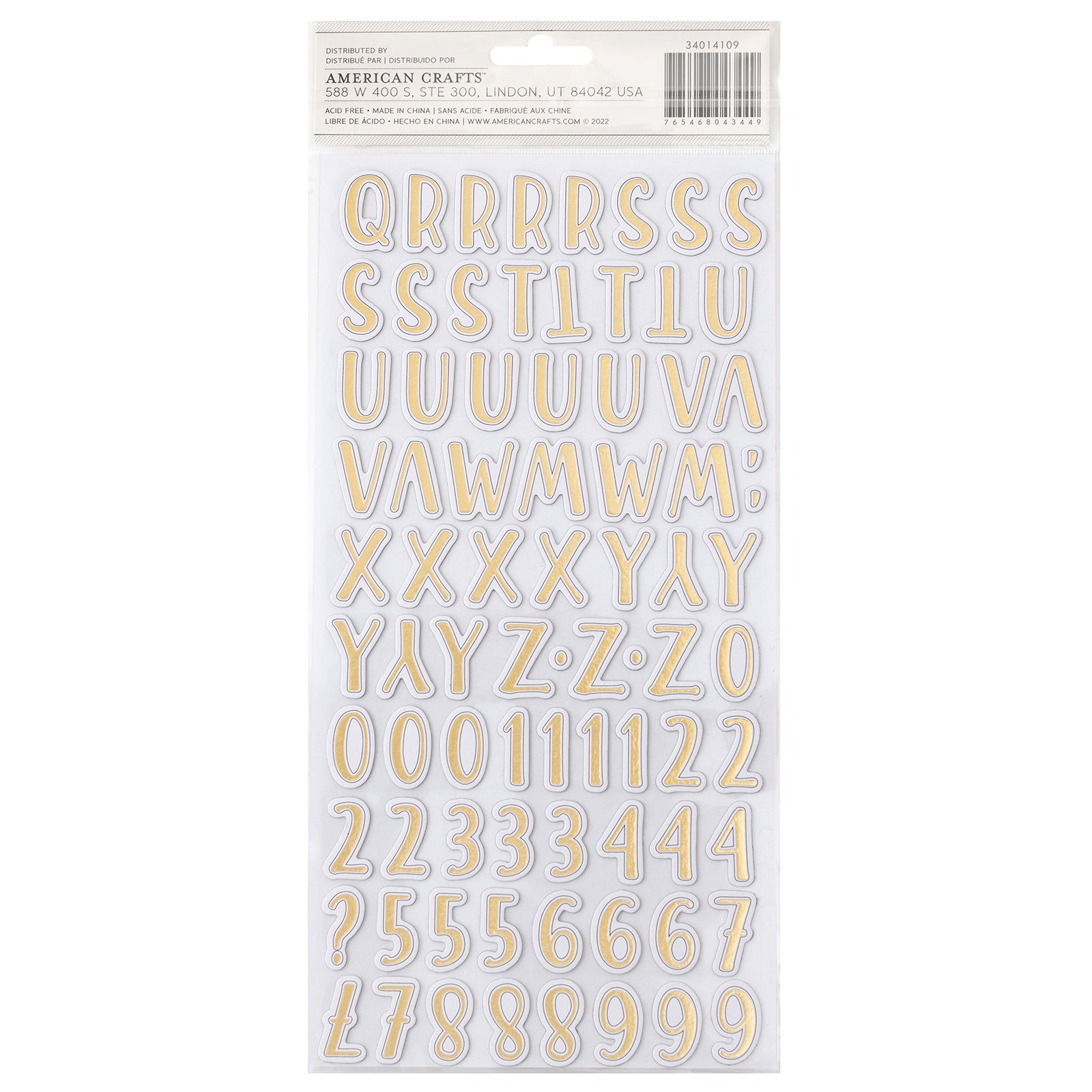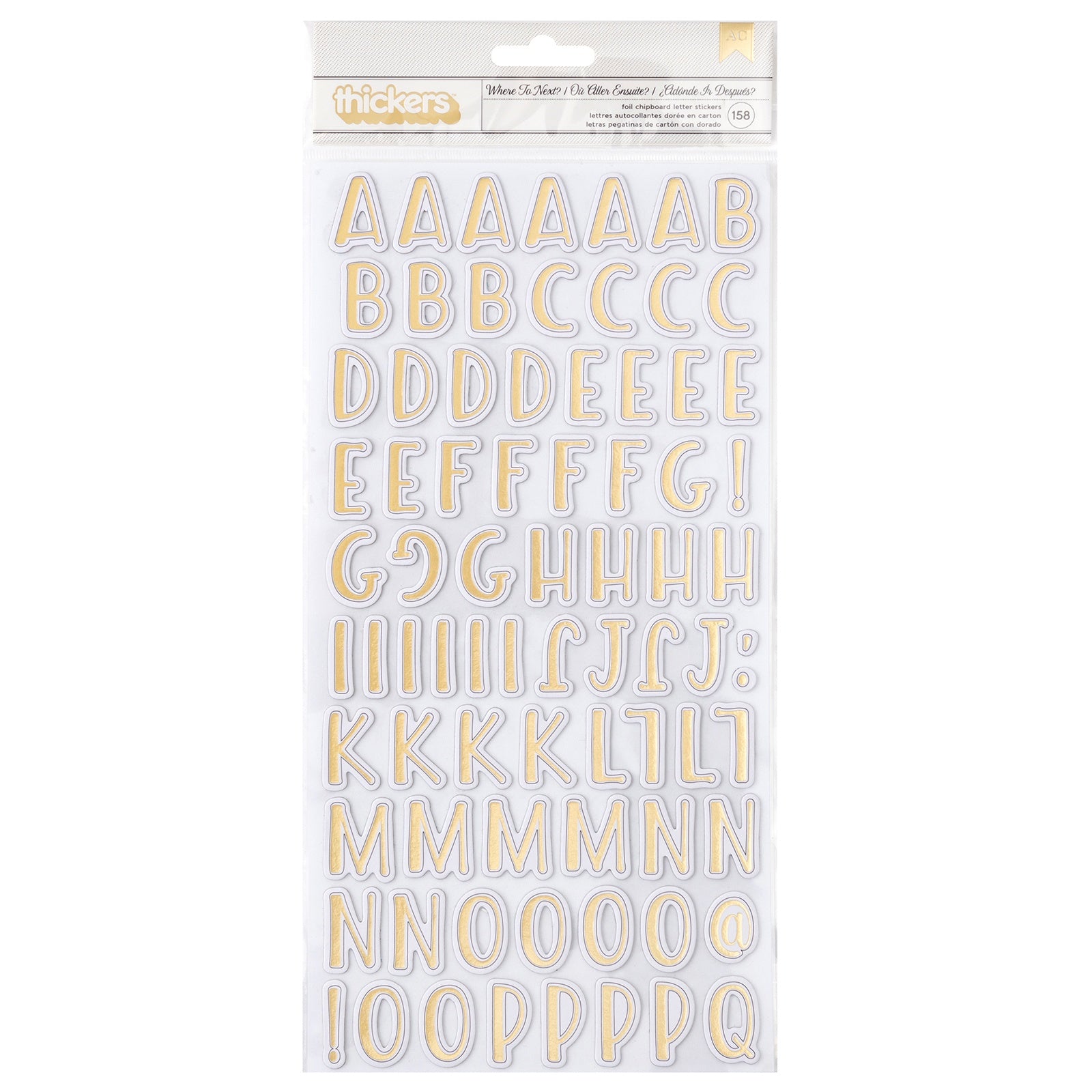 Create custom titles and words for any project with alphabet Thickers! Mix and match letters and punctuation marks to personalize mixed media projects. They're perfect for scrapbooks, cards, journals, planners, and more. Mix and match letters, numbers, and punctuation marks to create custom titles and words. Perfect for scrapbooks, cards, mixed media projects, and so much more. Add some shine with a special gold foil finish! Pair with other Vicki Boutin products for coordinated projects. This package contains 158 alpha Thickers in a fun font and gold foil finish. Imported.