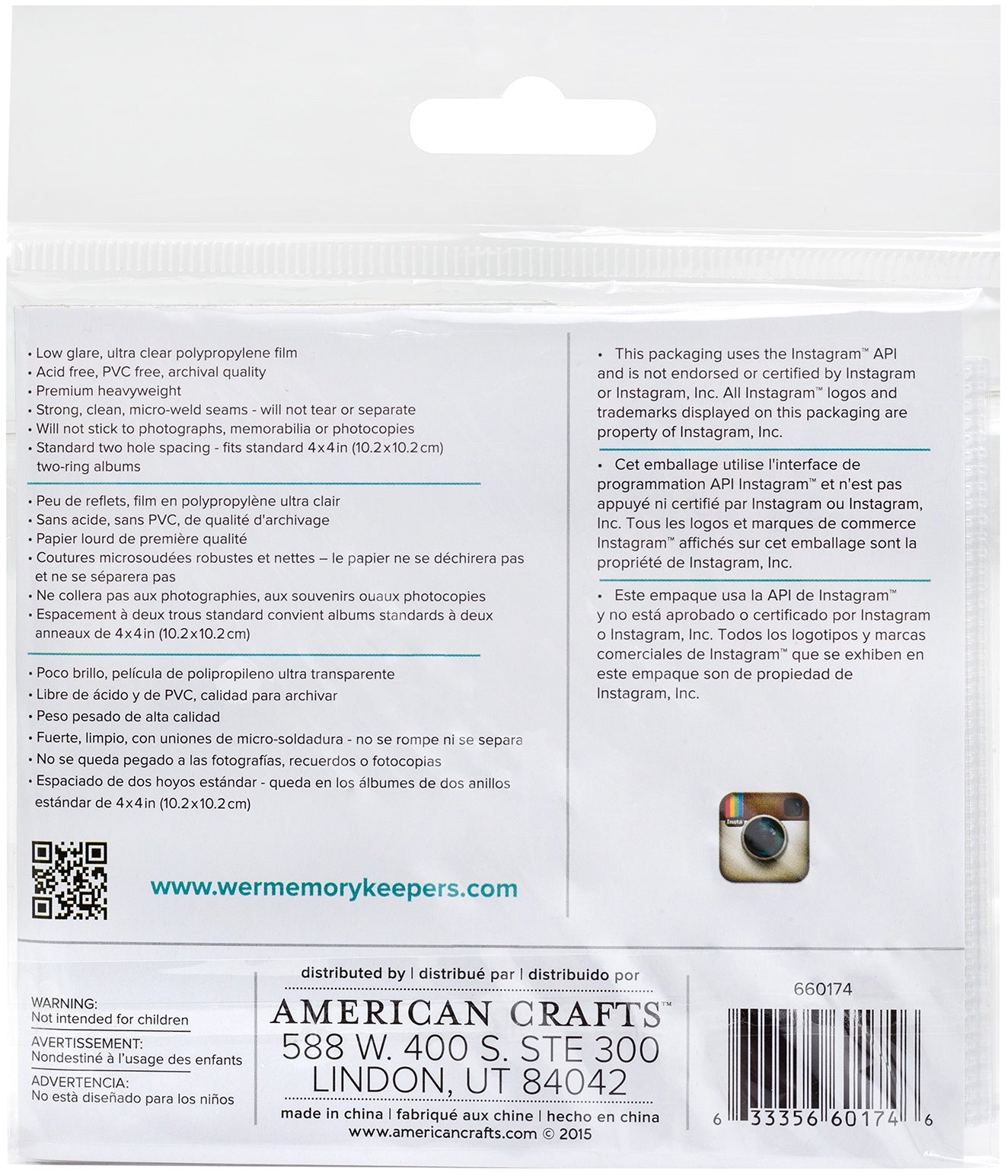 We R Memory Keepers-Instagram Albums Made Easy Photo Sleeve Protectors. These ultra thick and clear photo sleeves are the perfect way to protect and display all of your special photos! Fits standard 4x4 inch 2-ring albums. This package contains ten 4x4 inch photo sleeves with one pocket in each. Acid free. PVC free. Archival quality. Imported.