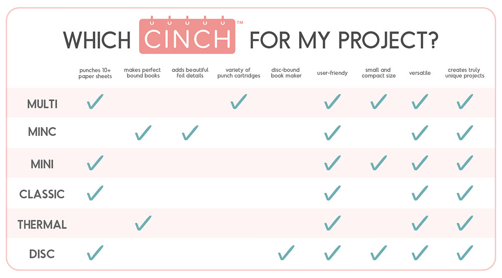 The Cinch Book Binding Machine by We R Memory Keepers makes booking binding quick, easy and affordable. And now the Cinch comes in a new adorable mini size! It is the best binding tool on the market for home, school and office projects. Punch perfect holes with customizable hole spacing on any size project. The Mini Cinch is great for making mini albums, recipe books, customized journals and planners, presentations and more. This package includes one Mini Cinch book binding machine.