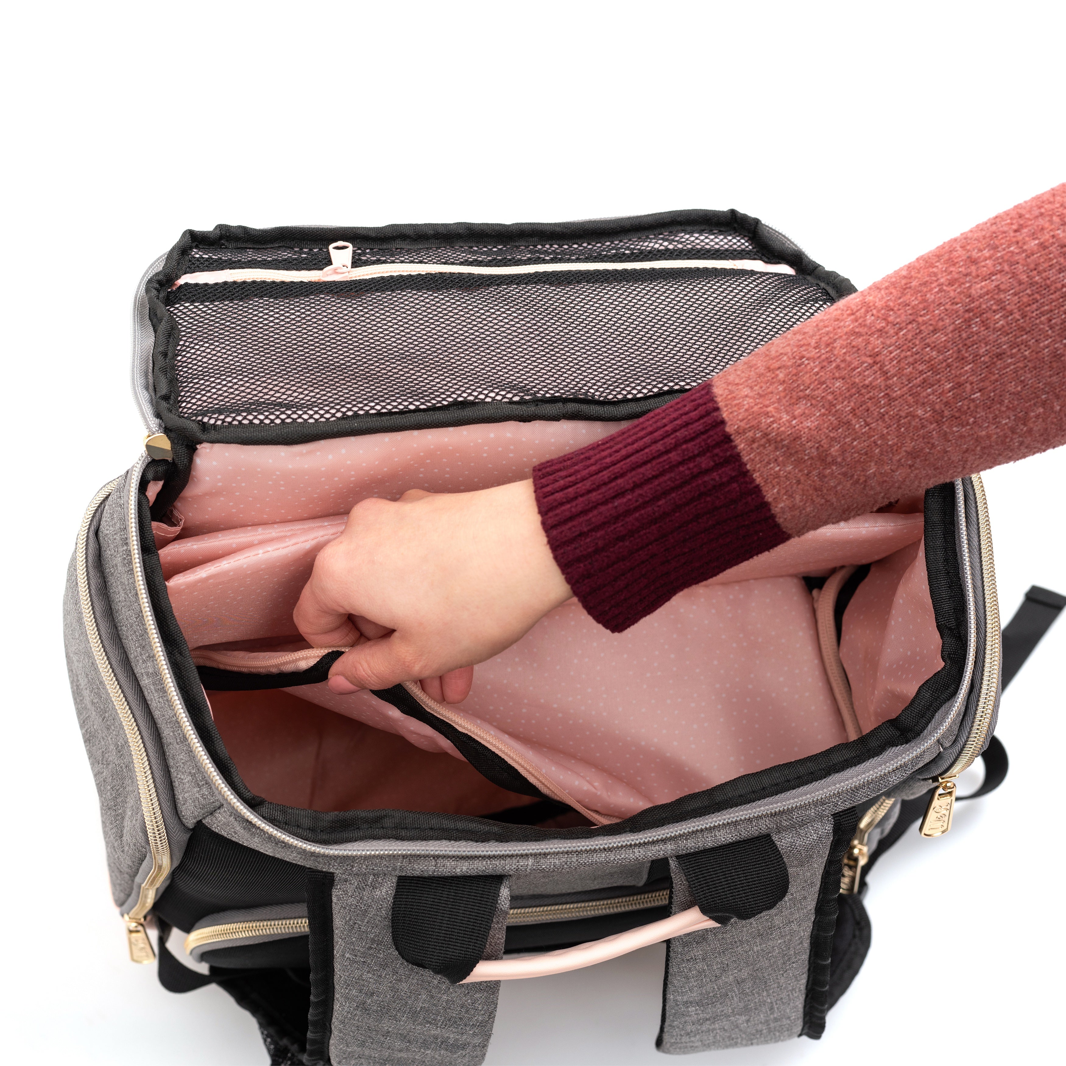 The Crafter's Backpack by We R Makers is a must-have, multi-functional accessory for any crafter! It features multiple pockets to keep track of all your favorites. It even fits 12x12-inch paper and layouts to keep them safe while you travel. The backpack is made with a durable fabric, and adjustable straps fit to your body. It's perfect for scrapbooking, cardmaking, and creating on the go. This package includes one Crafter's Backpack. Available in your choice of colorways, each sold separately. Imported.