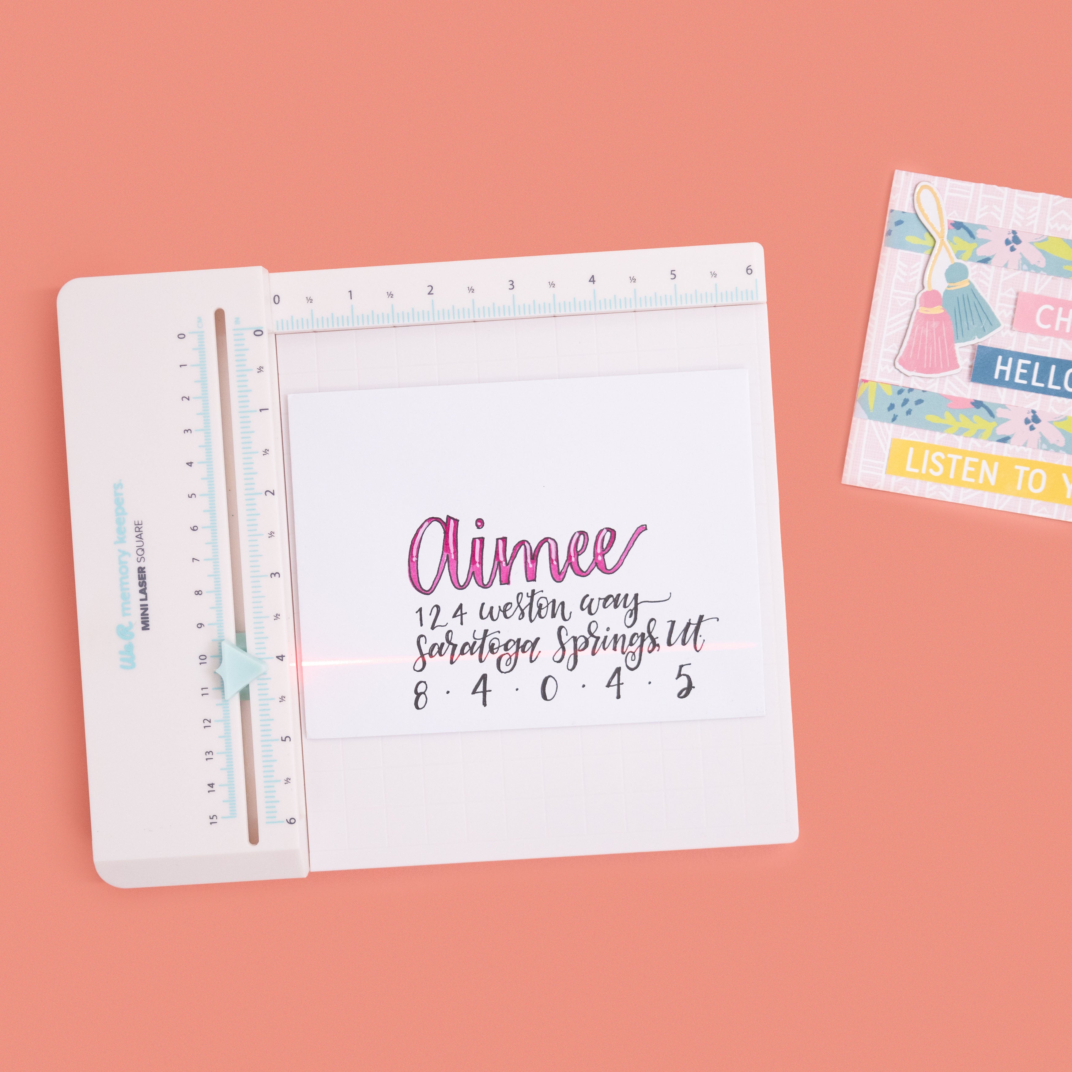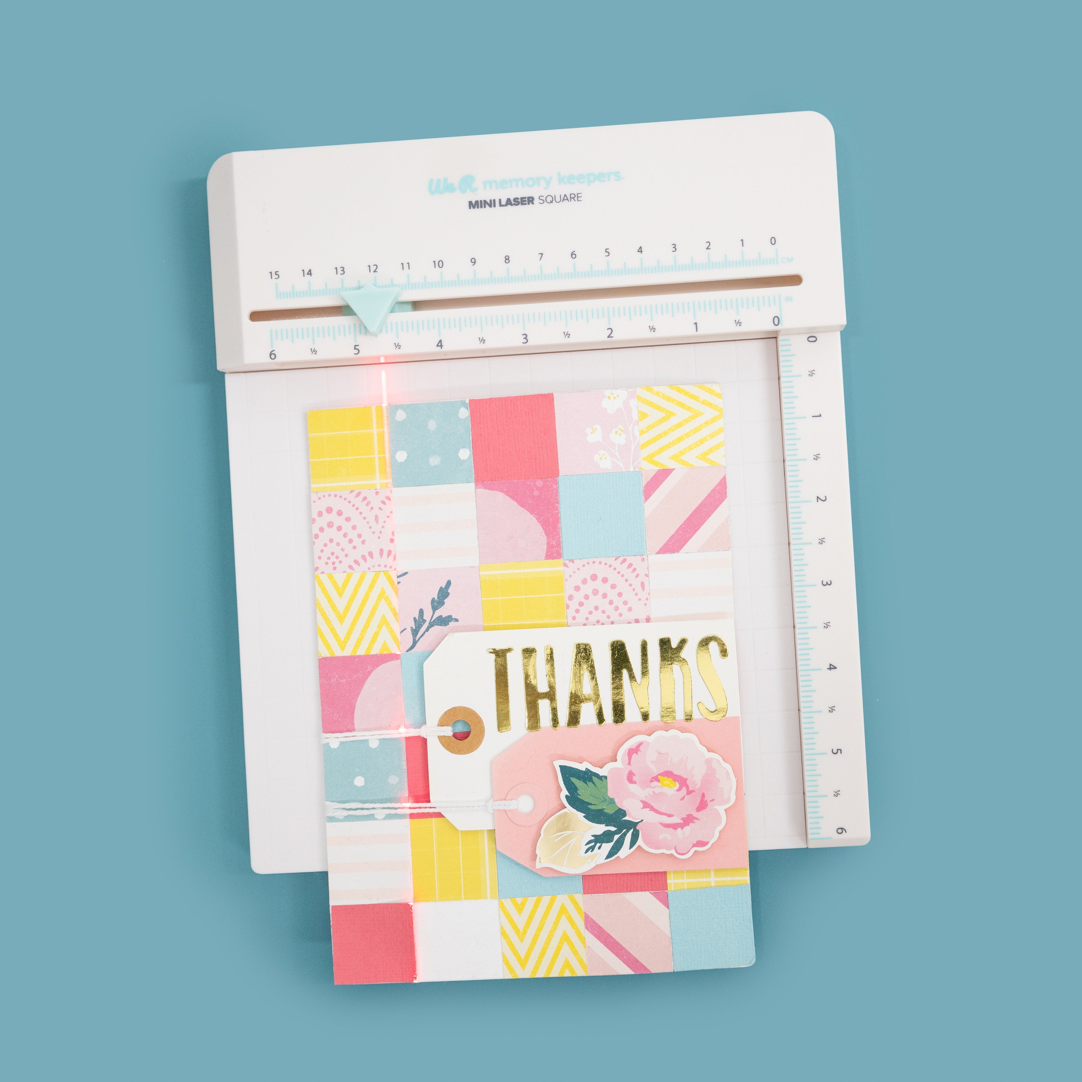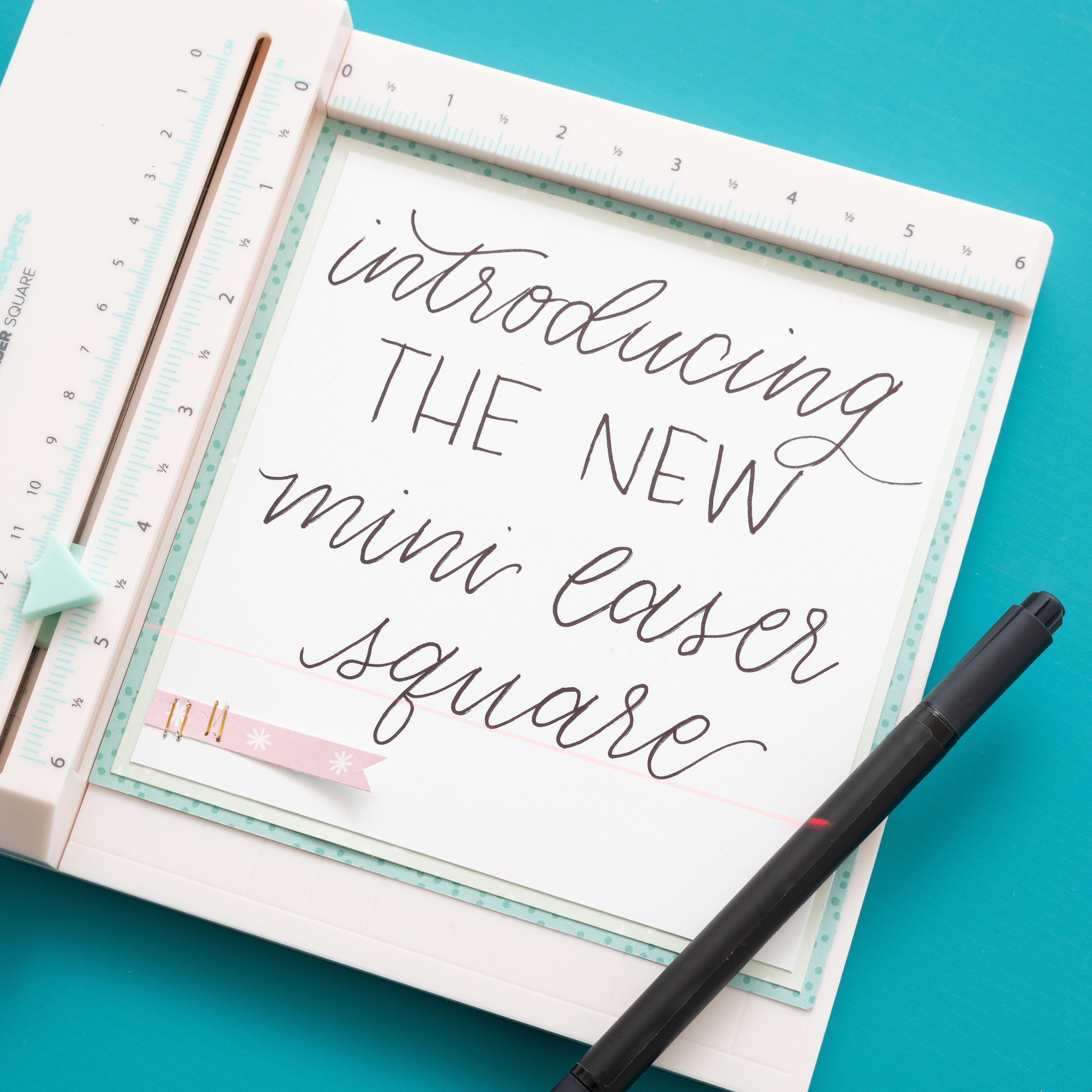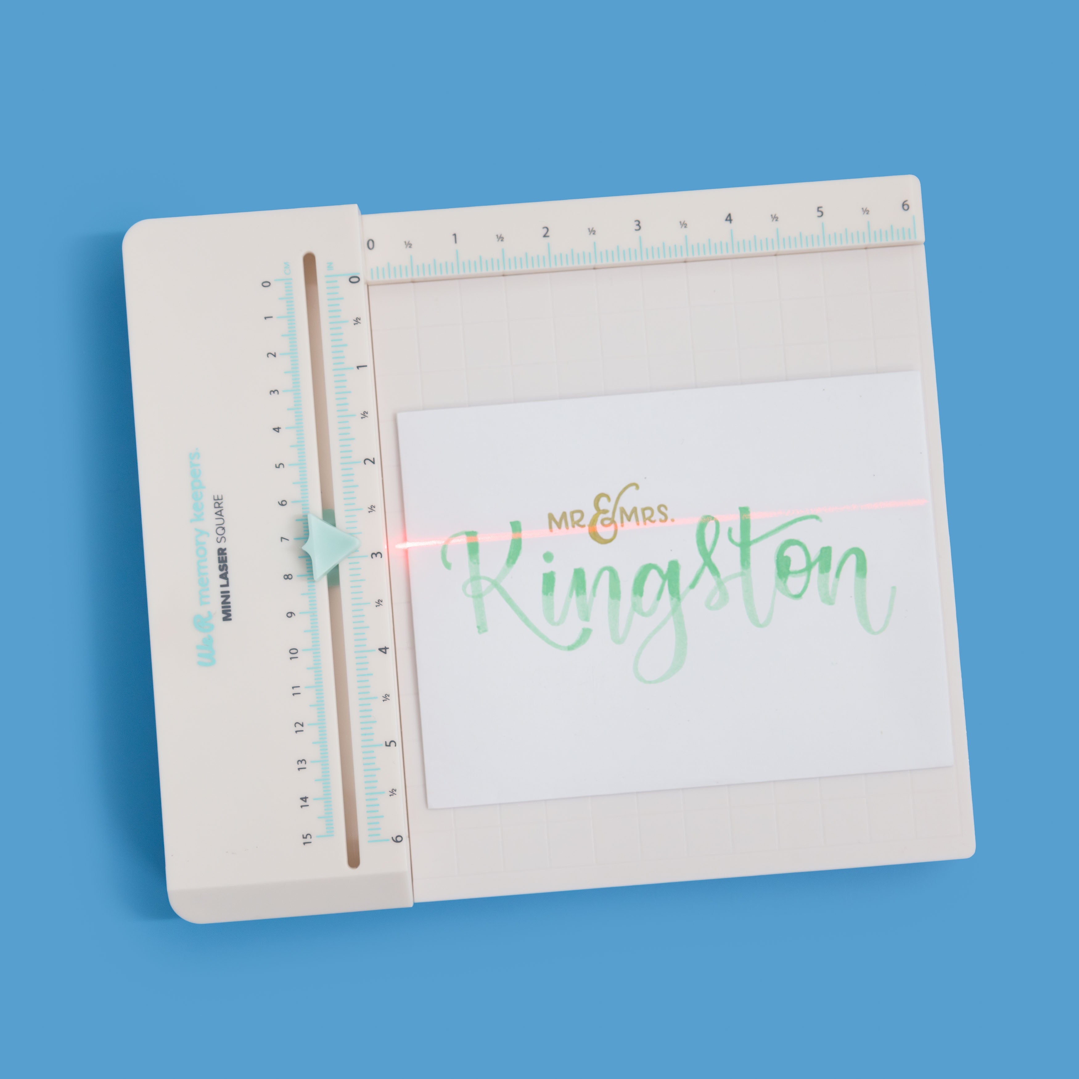 The sliding laser guide makes aligning stamps, handwriting, and embellishments quick and easy. Perfect for card making, hand lettering, and so much more. It has a 6 x 6.5 inch working space with measurements in inches and metric. Requires one 9V battery; not included. Recommended use by adults only. Laser may cause serious injury if pointed in or near the eye. Package measures 9.125 x 9.125 x 1.75 inches and includes one Mini Laser Square. Imported.
