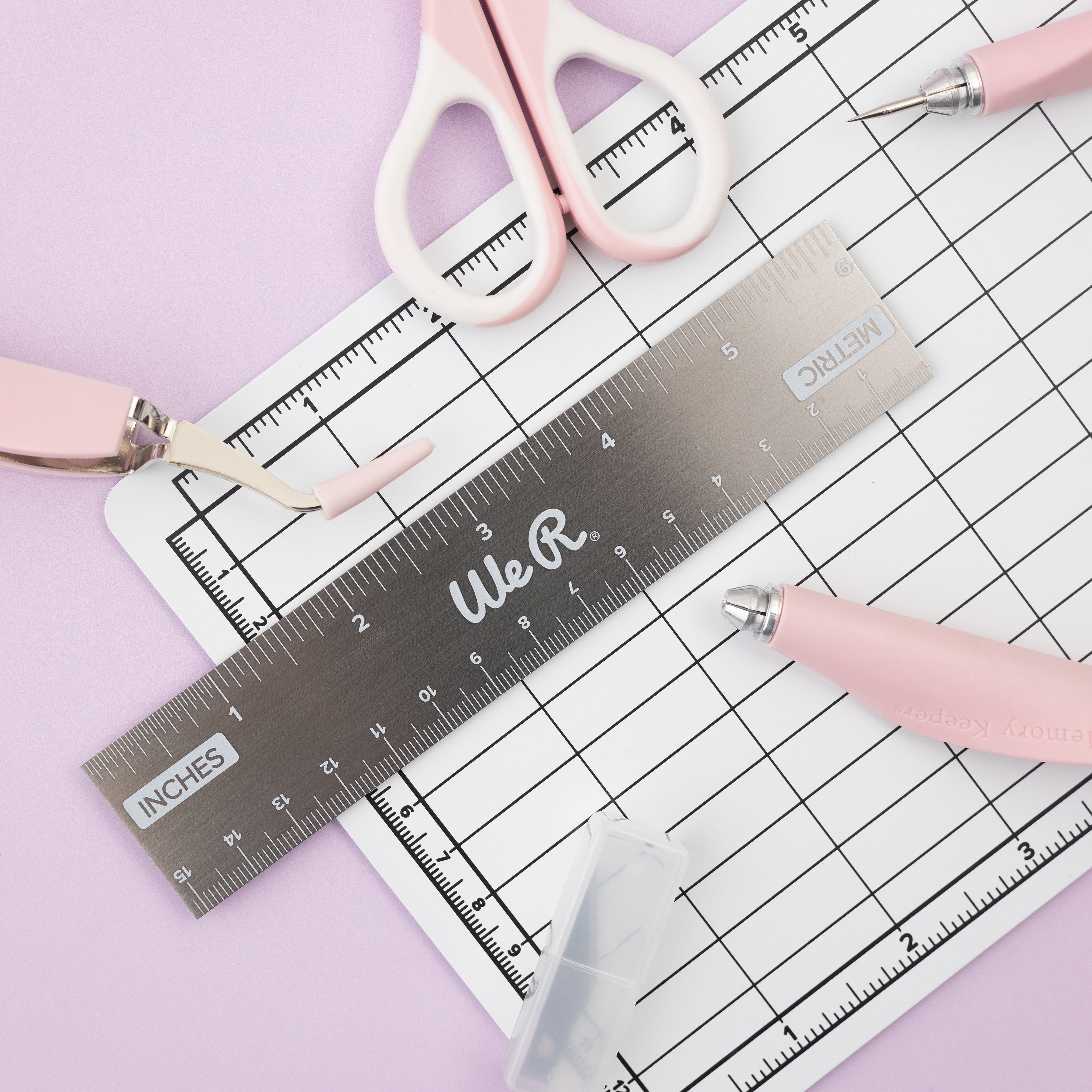 The We R Makers Mini Tool Kit in Pink is the ultimate companion for all your DIY craft projects. This comprehensive kit includes essential tools: a cutting mat, ruler, scissors, craft knife, tweezers, brad setter, and piercing tool. Designed for versatility, it's perfect for scrapbooking, journaling, card making, and a wide range of other crafts. The vibrant pink color adds a fun and stylish touch to your toolkit, while the high-quality construction ensures each tool is durable and reliable. The cutting mat provides a safe and precise surface for all your cutting needs, while the ruler and craft knife offer accuracy and control. The tweezers, brad setter, and piercing tool make detailed work effortless. Compact and portable, this mini tool kit is perfect for crafters on the go. Whether you're a beginner or an experienced crafter, the We R Makers Mini Tool Kit has everything you need to bring your creative projects to life..