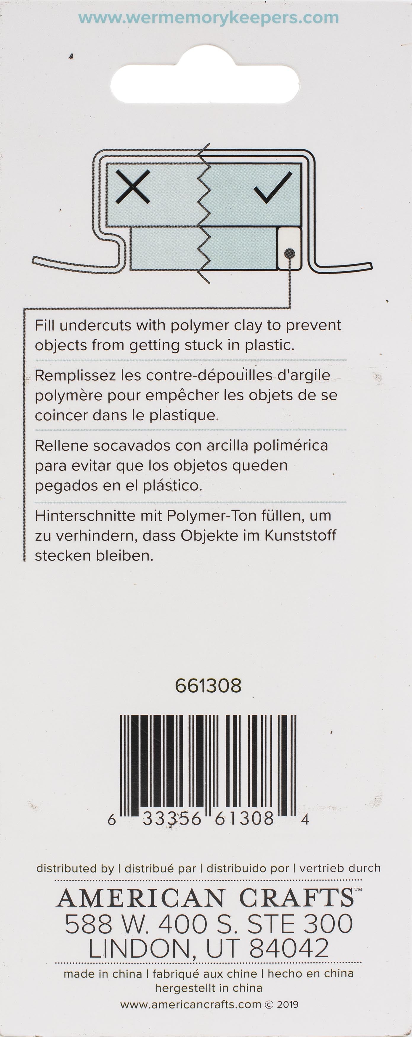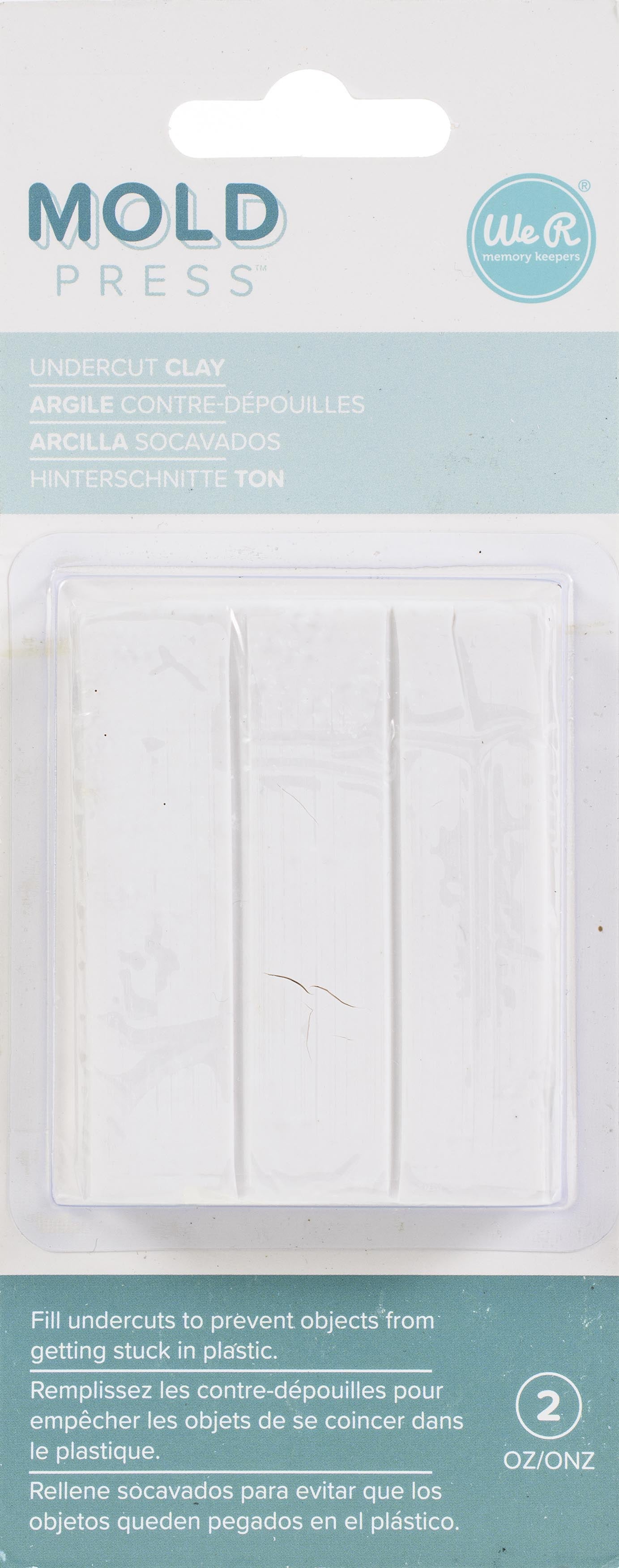 Fill undercuts to prevent objects from getting stick in plastic. This package contains 2oz of polymer clay. Imported.