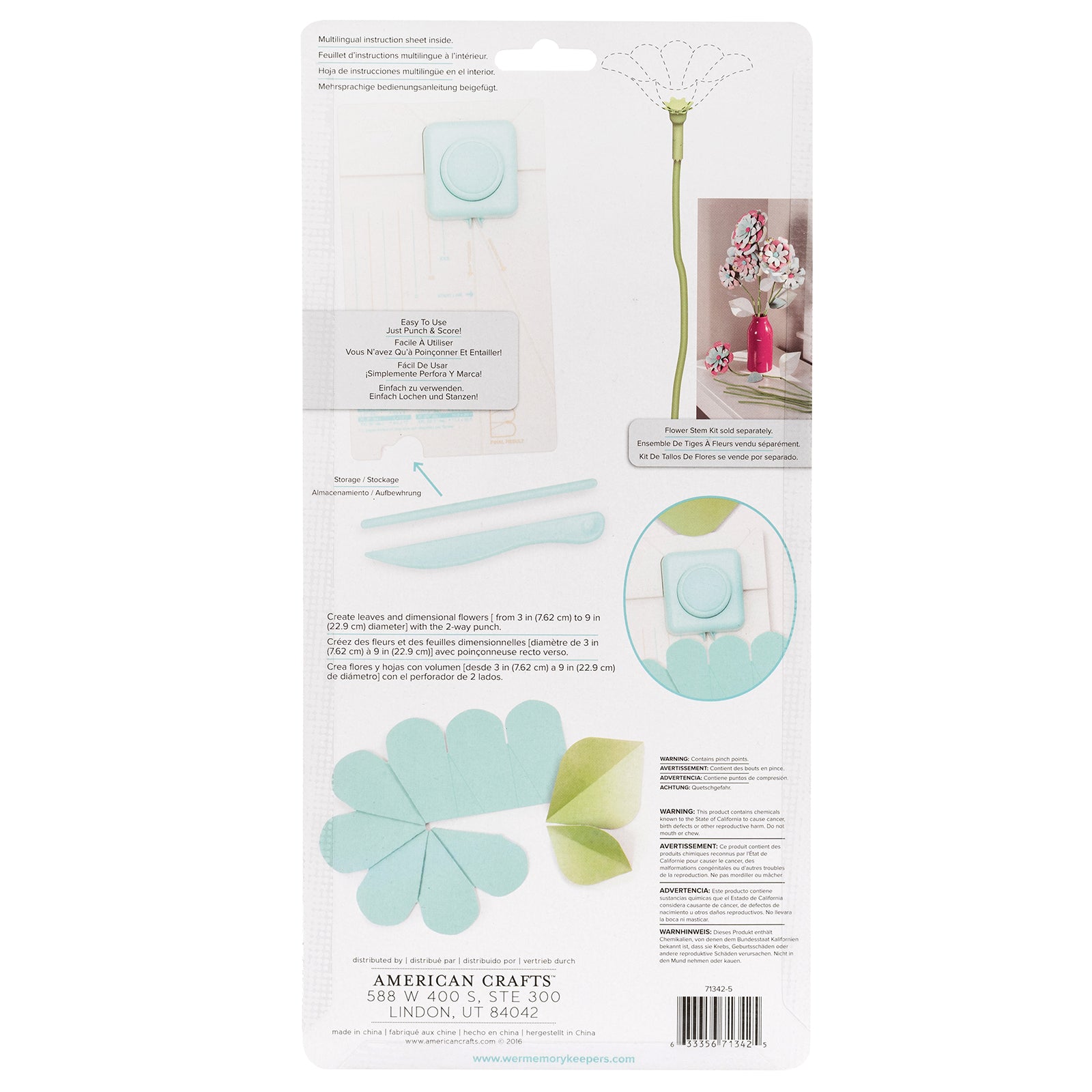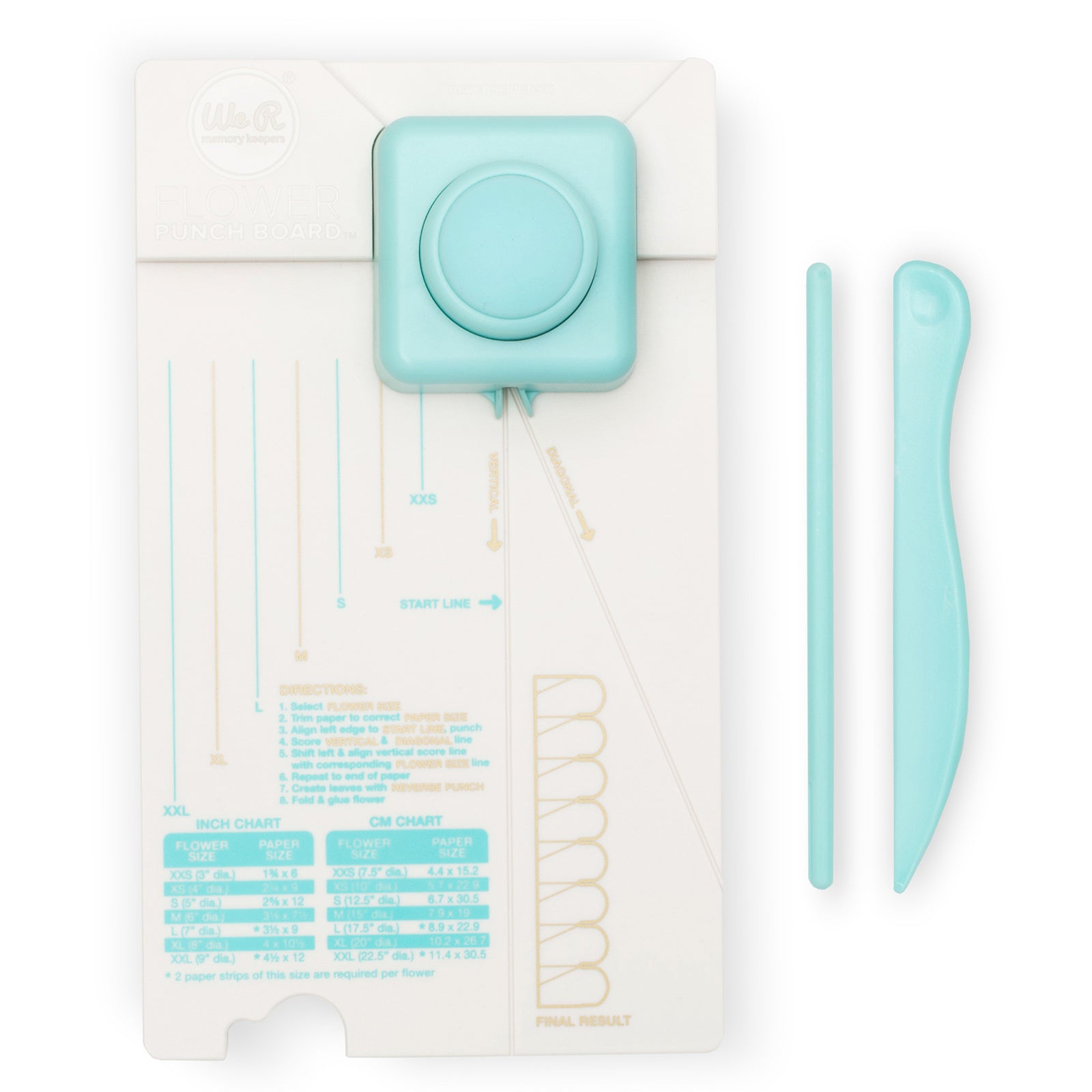 Create a beautiful bouquet of paper flowers with this easy to use flower punch board. This package contains We R Makers Flower Punch Board, one 9x5.25x1.75 inch score board, one two way punch, one scoring tool, one petal curler and one user guide. Imported.