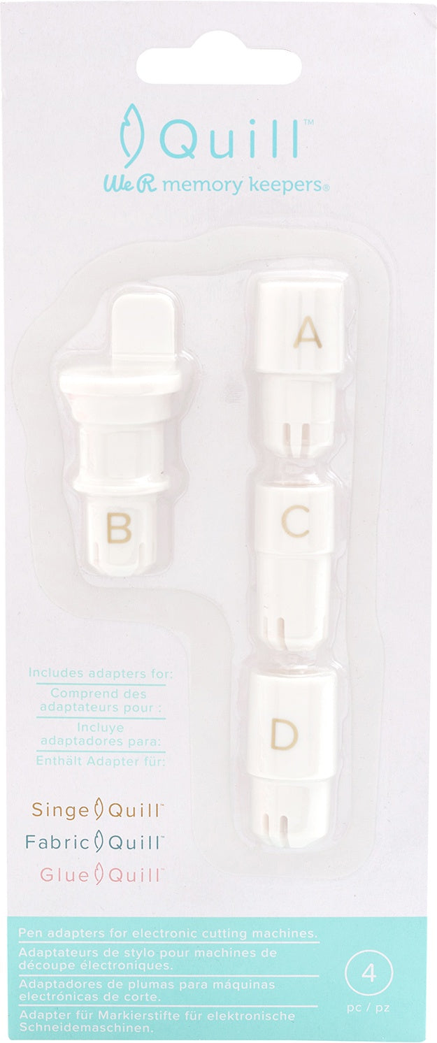 Adapt a variety of American Crafts pens to work with your electronic cutting machine, including Singe Quill, Glue Quill, and Fabric Quill pens. Includes adapters for Silhouette, Brother, Cricut, and Sizzix machines. (sold separately). This 3.5x8.5x1 inch package contains four Quill Pen Adapters. Imported.