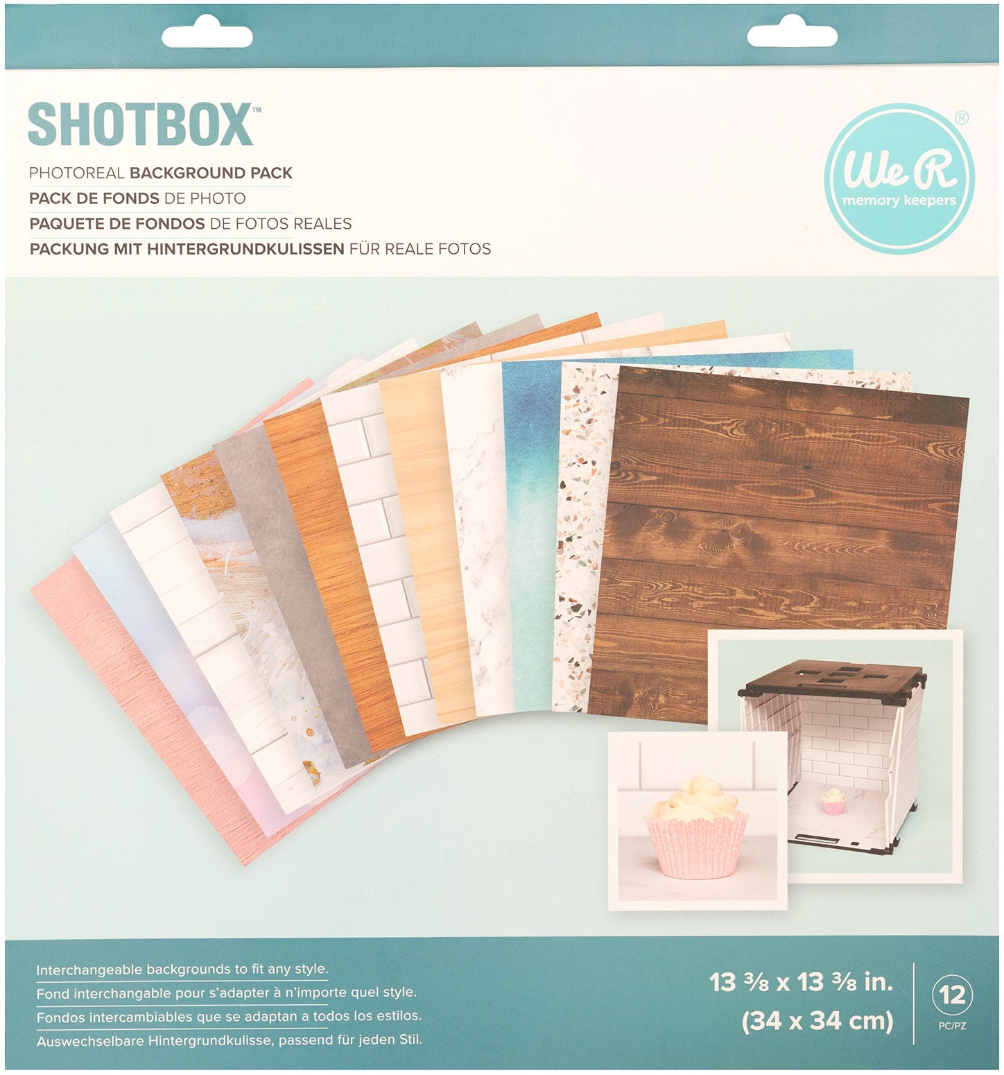 Create professional level content at home with the Shotbox by We R Makers! Photoreal backgrounds are interchangeable and can fit any style. They're great for adding texture and detail to photos. Each sheet features a protective coated surface and a photoreal image. This package includes 12 sheets.