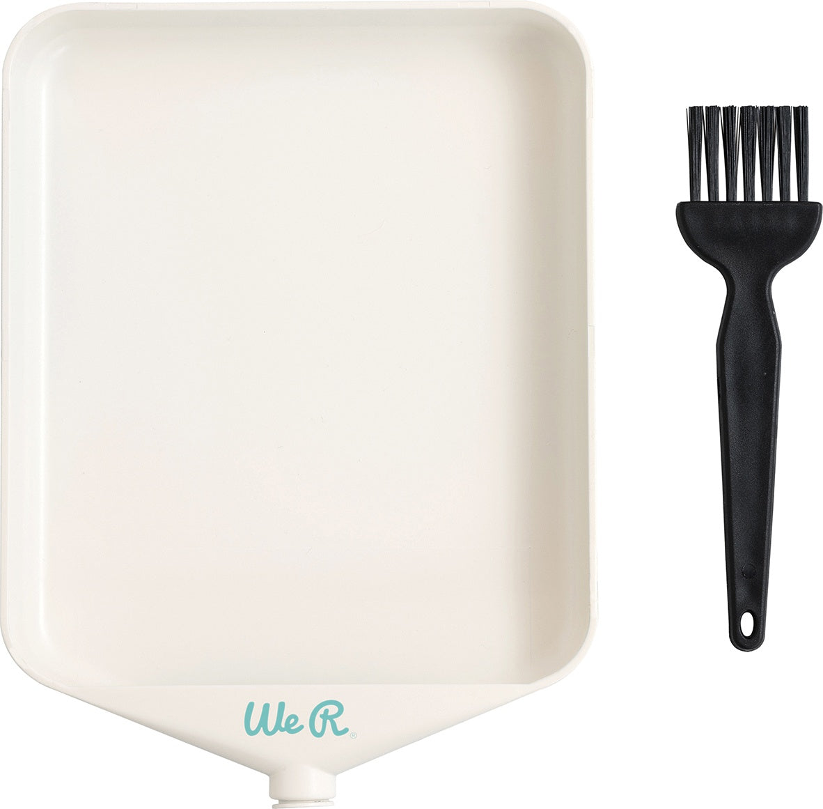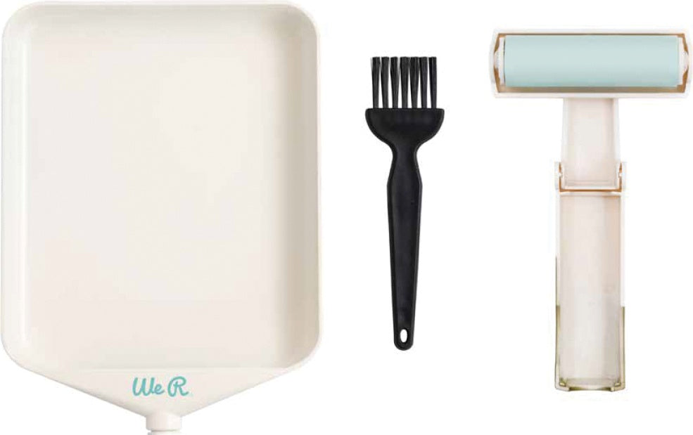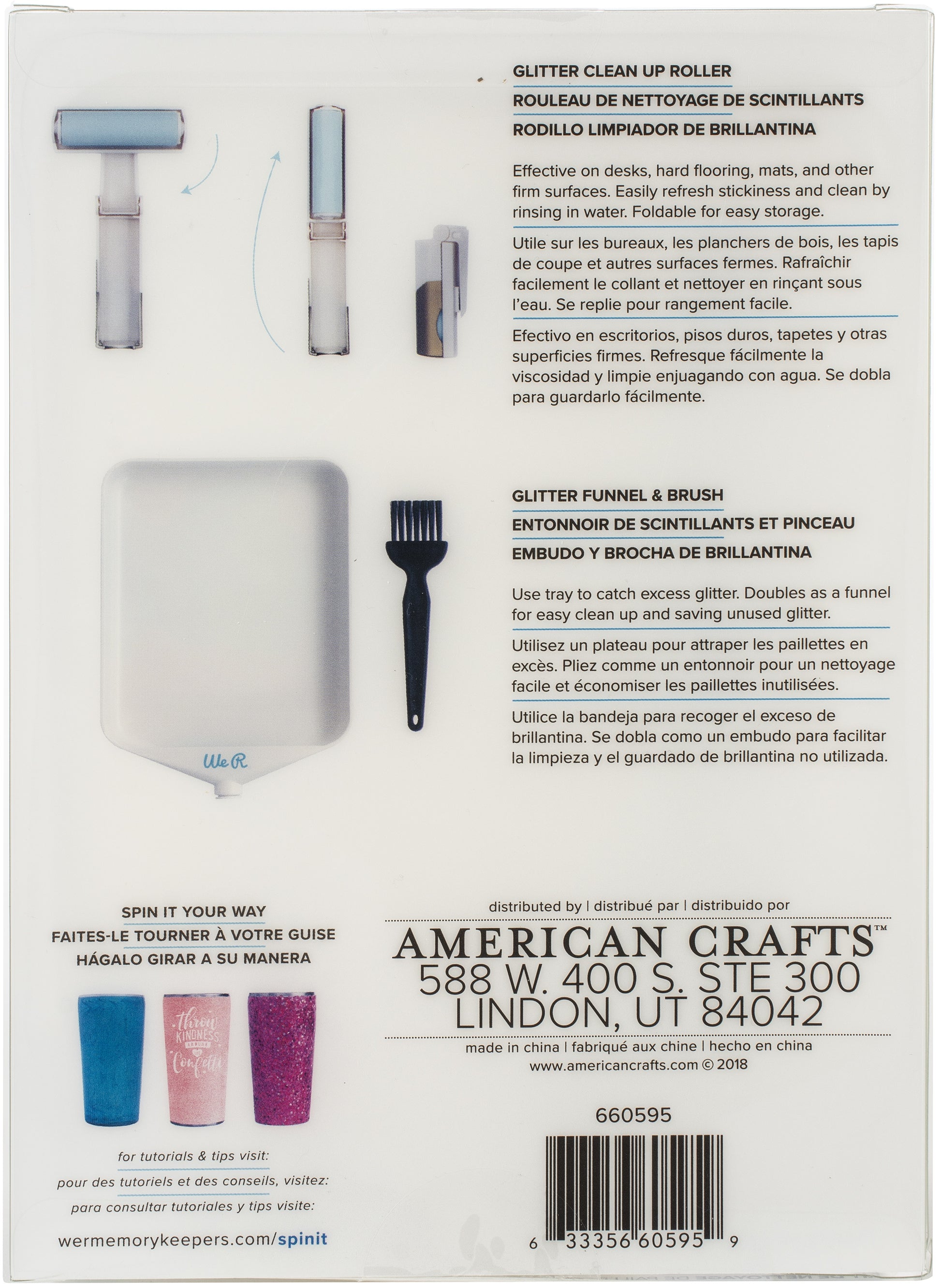 The clean up roller is effective on desks, hard flooring, mats and other firm surfaces. Use the tray to catch excess glitter. It also doubles as a funnel for easy clean up and saving unused glitter. This 6x8.25x1.625 inch package contains one glitter clean up roller and one glitter funnel & brush. Imported.