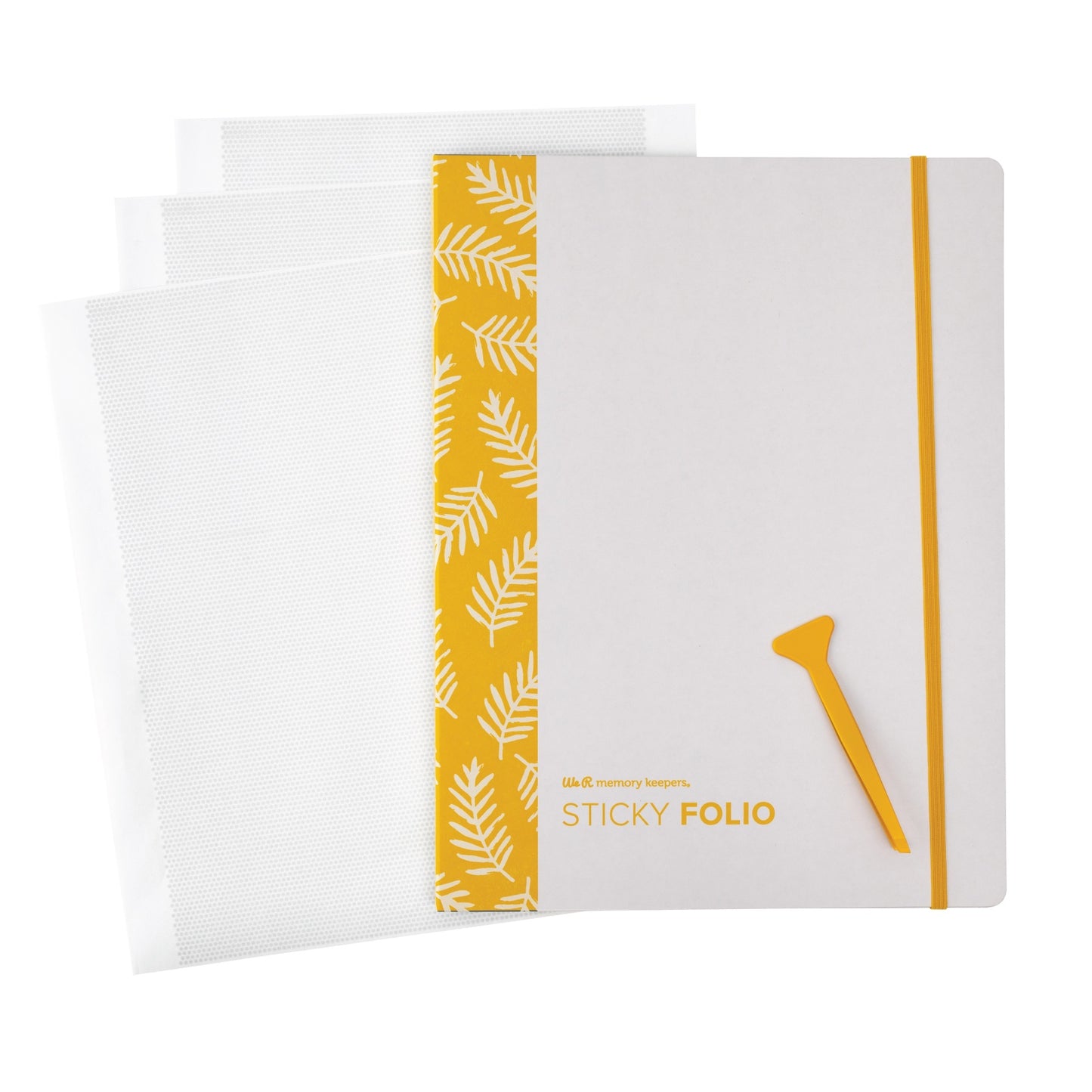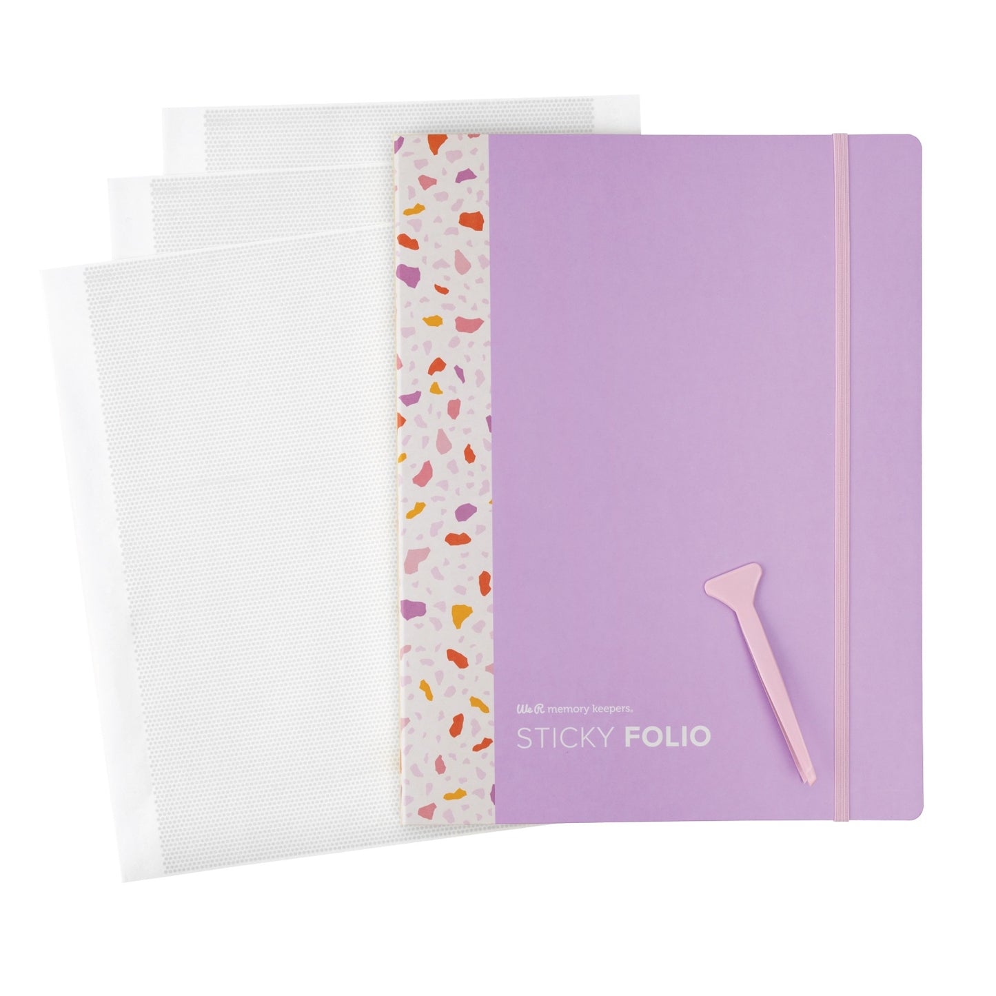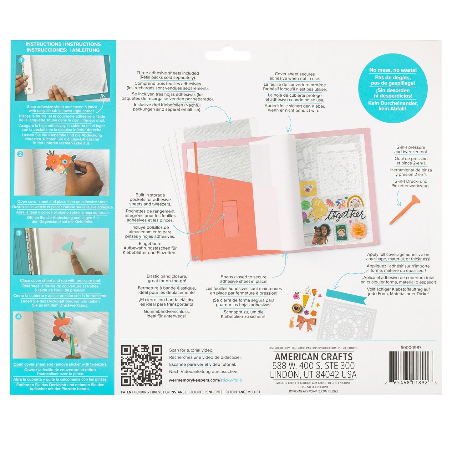 The Sticky Folio by We R Makers makes it easier than ever to apply full coverage adhesive. It’s perfect for creating stickers for scrapbooks, cards, and more. It provides a stylish folio workspace, and a permanent, strong adhesive—in just 4 steps! Micro dot sheet refills snap into each folder so you can keep making customized stickers all day long! This package includes 10 letter-sized, acid free, permanent, micro-dot adhesive sheets.