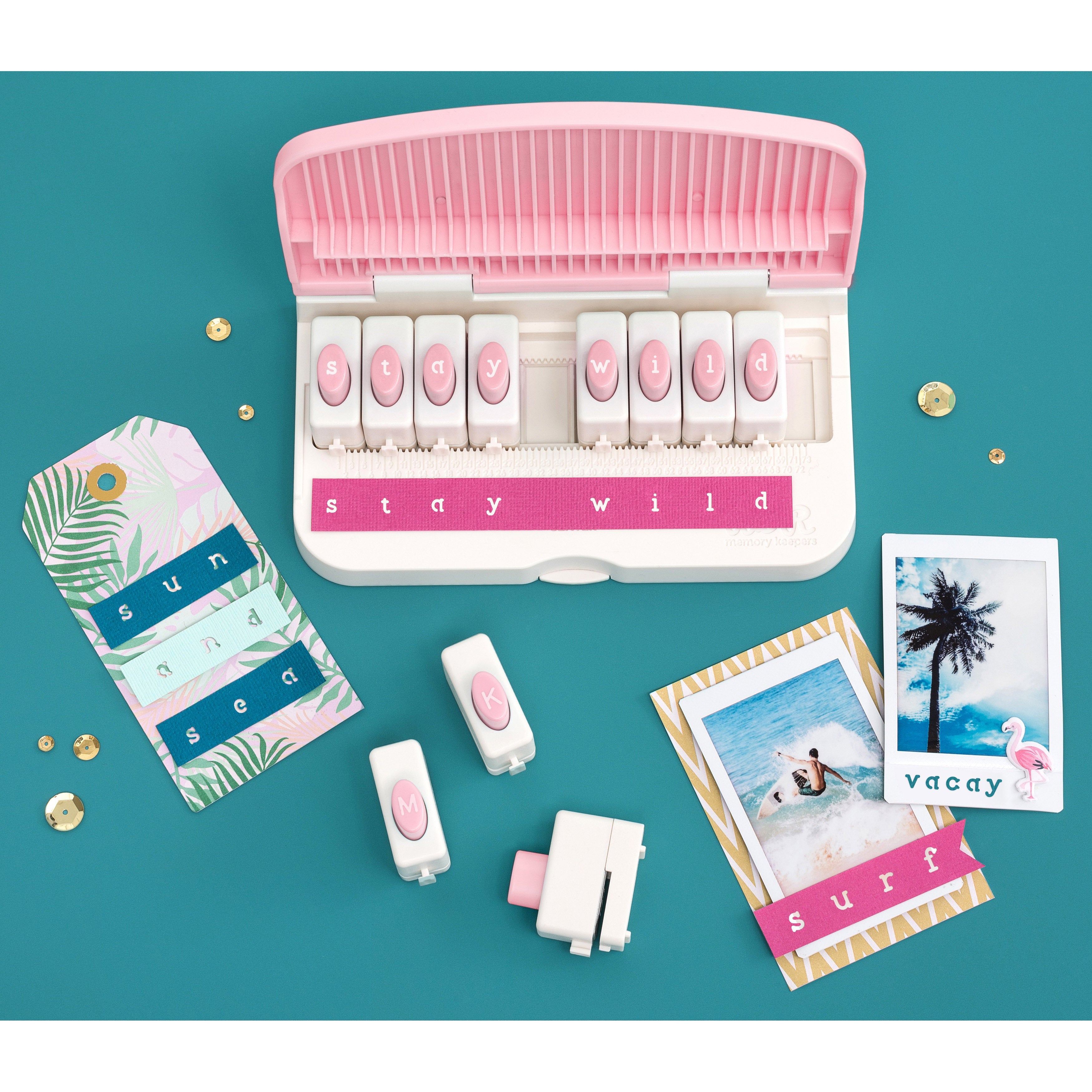 The Word Punch Board by We R Makers packs the perfect punch every time! Its unique design allows you to punch out letters and phrases for planners, journals, cards, and more without worrying about spacing and alignment. This package includes 26 letter punches in a new lower case style and font, and one Punch Board.