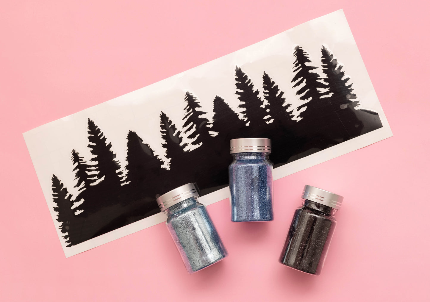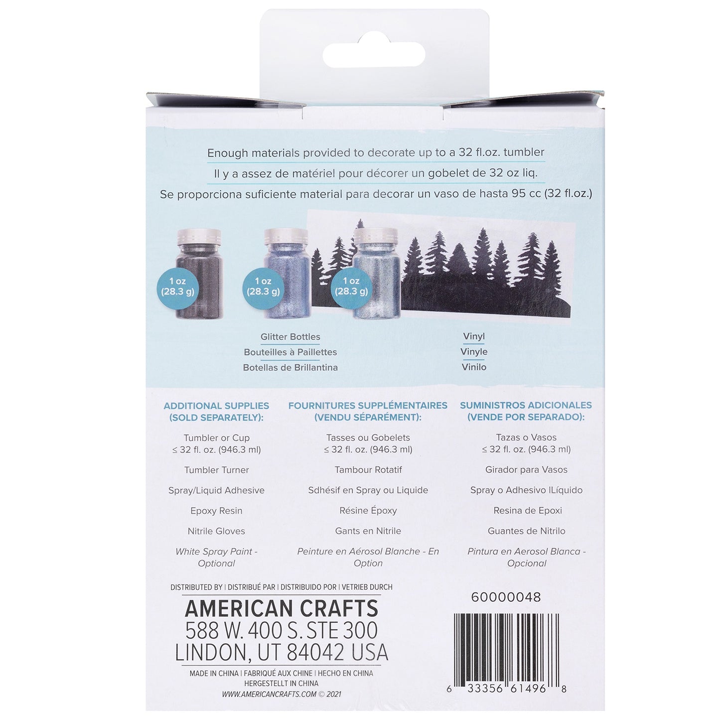 All the decorations needed to create a custom tumbler. This package contains three shades of blue glitter and tree vinyls. Imported.