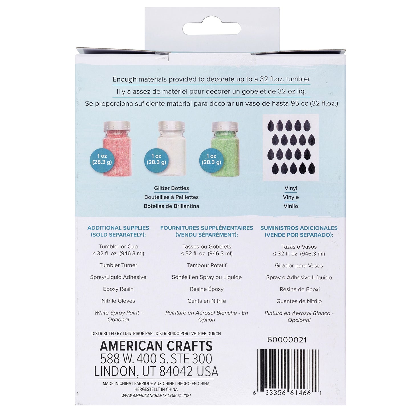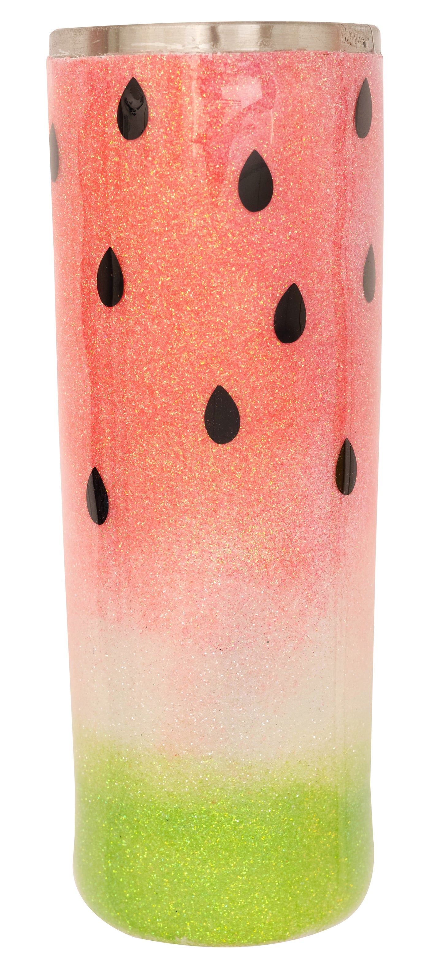 All the decorations needed to create a custom tumbler. This package contains pink glitter, white glitter, lime glitter and vinyl seeds. Imported.