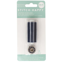 We-R Memory Keepers-Stitch Happy: Multimedia Thread. Perfect for sewing paper and fabric with the stitch happy multimedia sewing machine. This 3x6.25 inch package contains one 2.5 inch spool of 100 yards of thread and one metal bobbin of 10 yards of thread. Available in a variety of colors, each sold separately.